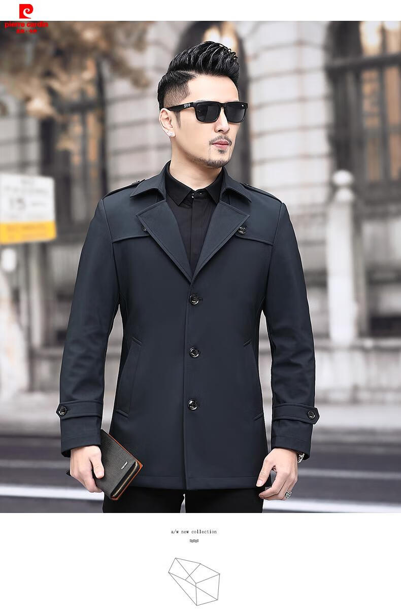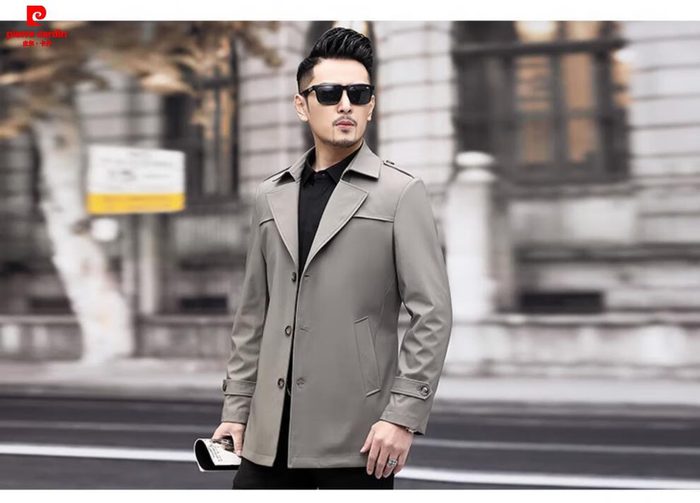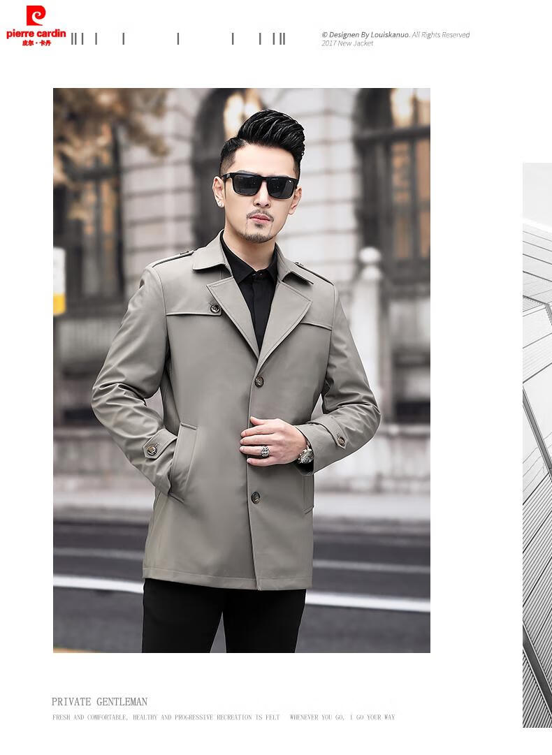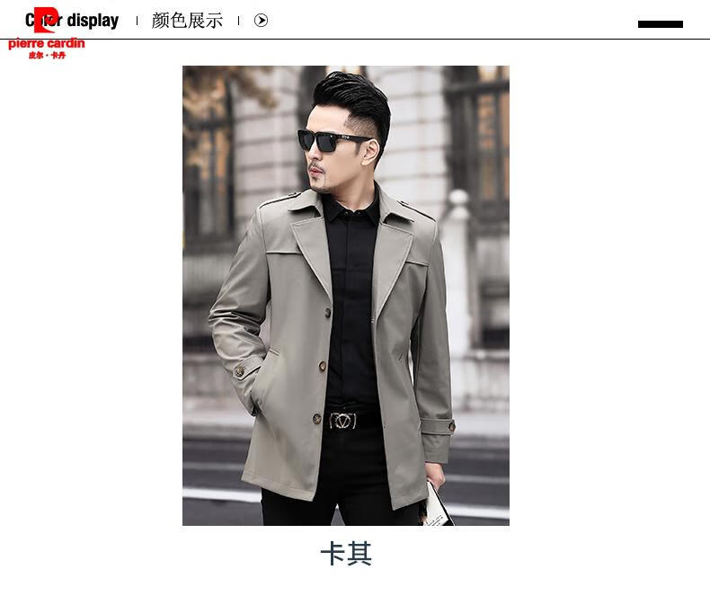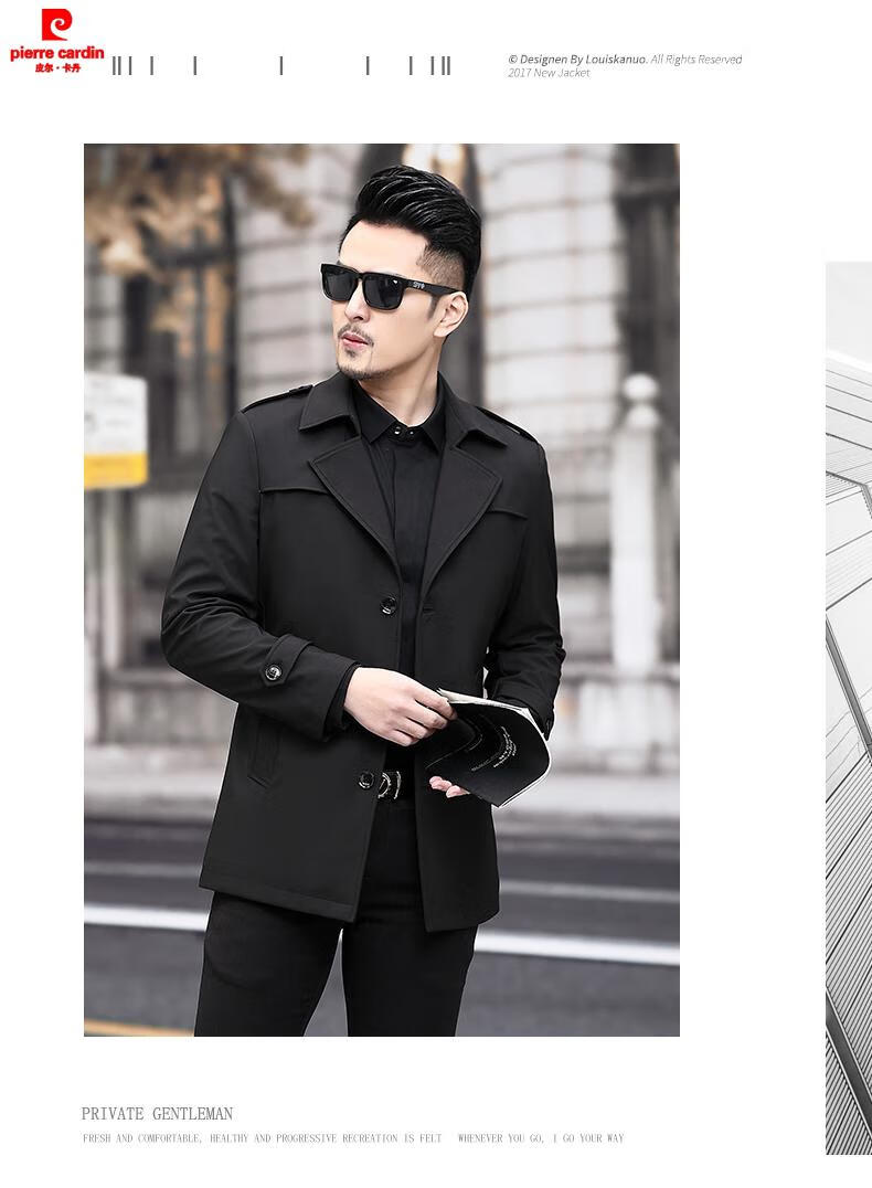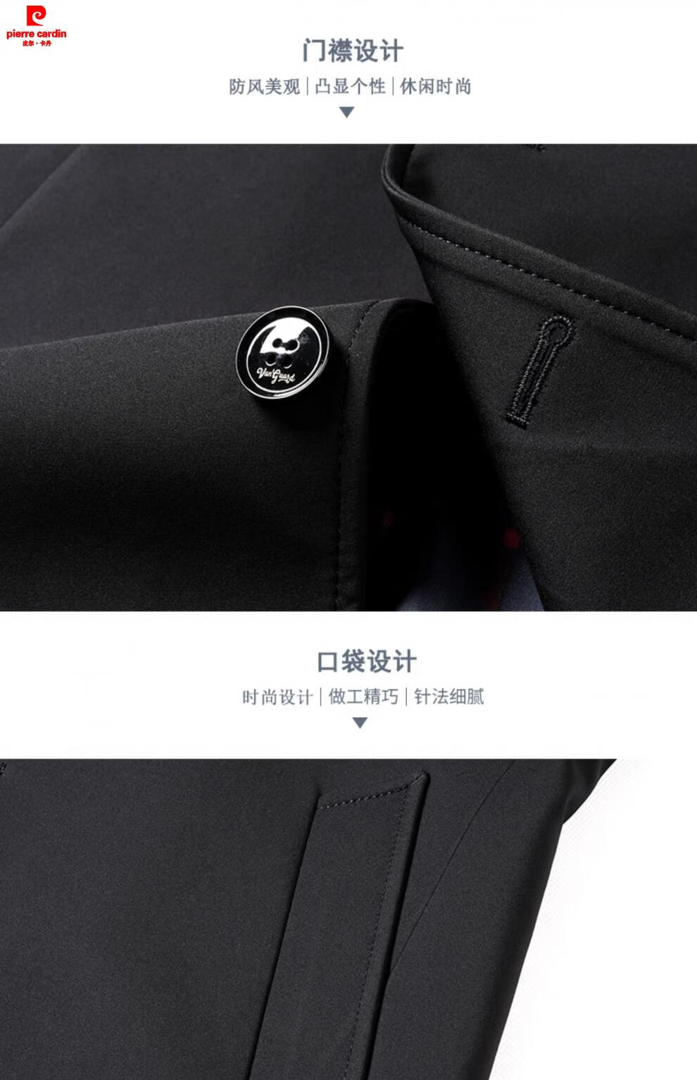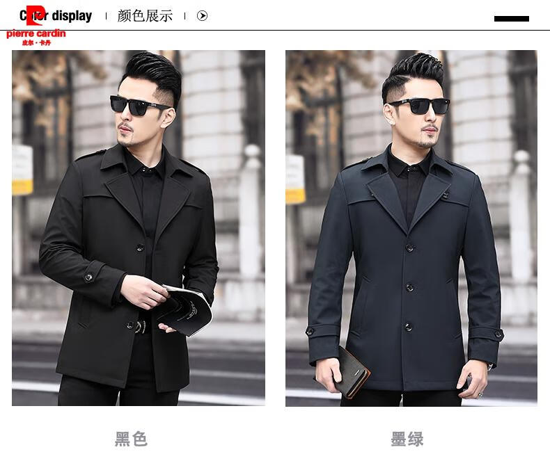 Pierre Cardin high-end men's windbreaker spring and autumn casual jacket slim short business versatile men's fashion top dark green plus cotton 3XL 190 recommended 180-200Jin Jin equals 0.5 kg