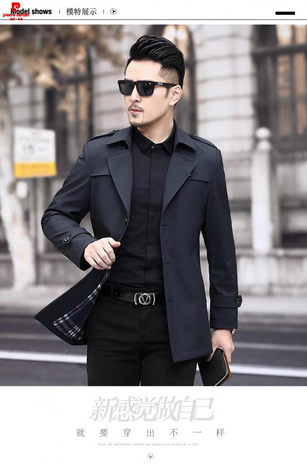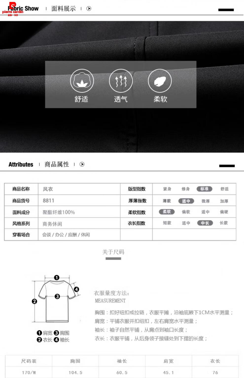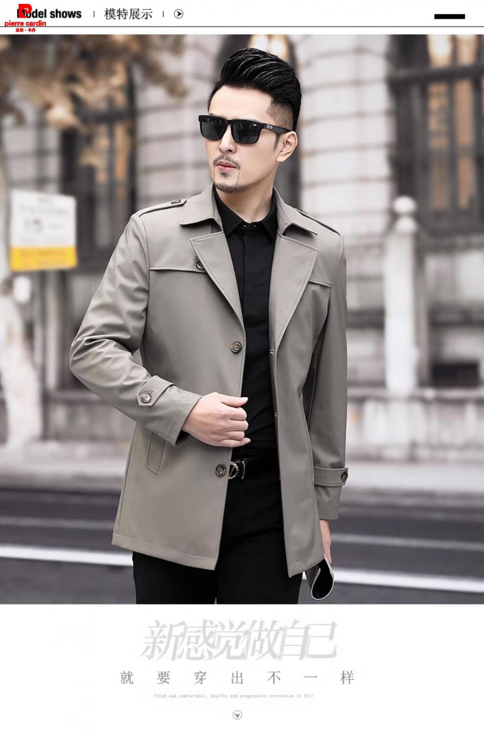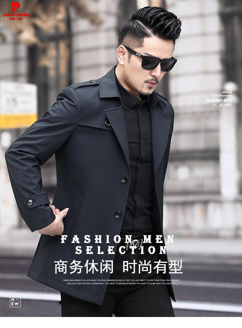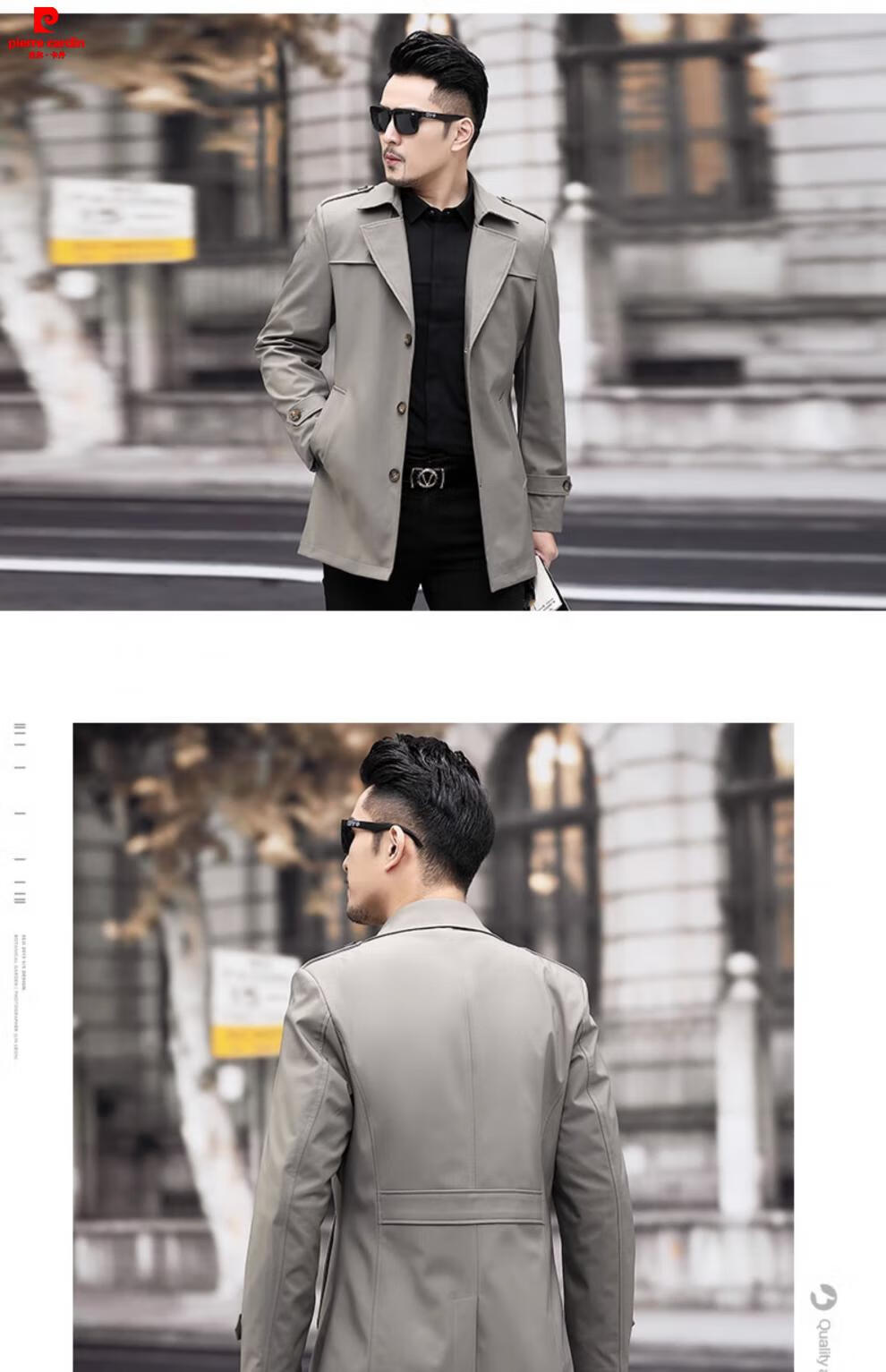 Pierre Cardin high-end men's windbreaker spring and autumn casual jacket slim short business versatile men's fashion top dark green plus cotton 3XL 190 recommended 180-200Jin Jin equals 0.5 kg