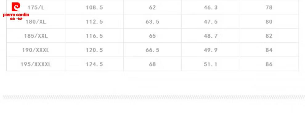 China (cm) 165 / 88-90 170 / 96-98 175 / 108-110 180 / 118-122 185 / 126-130