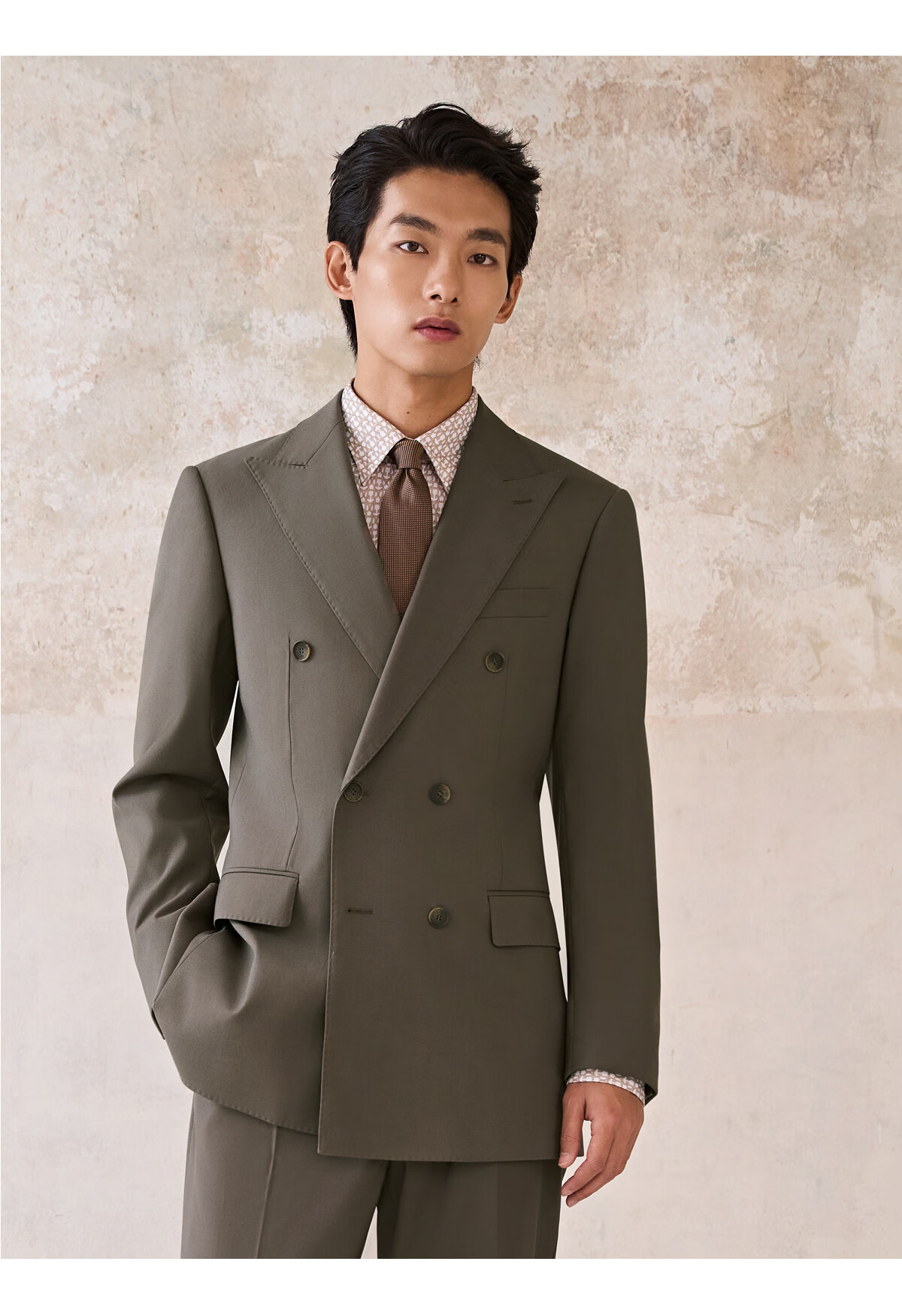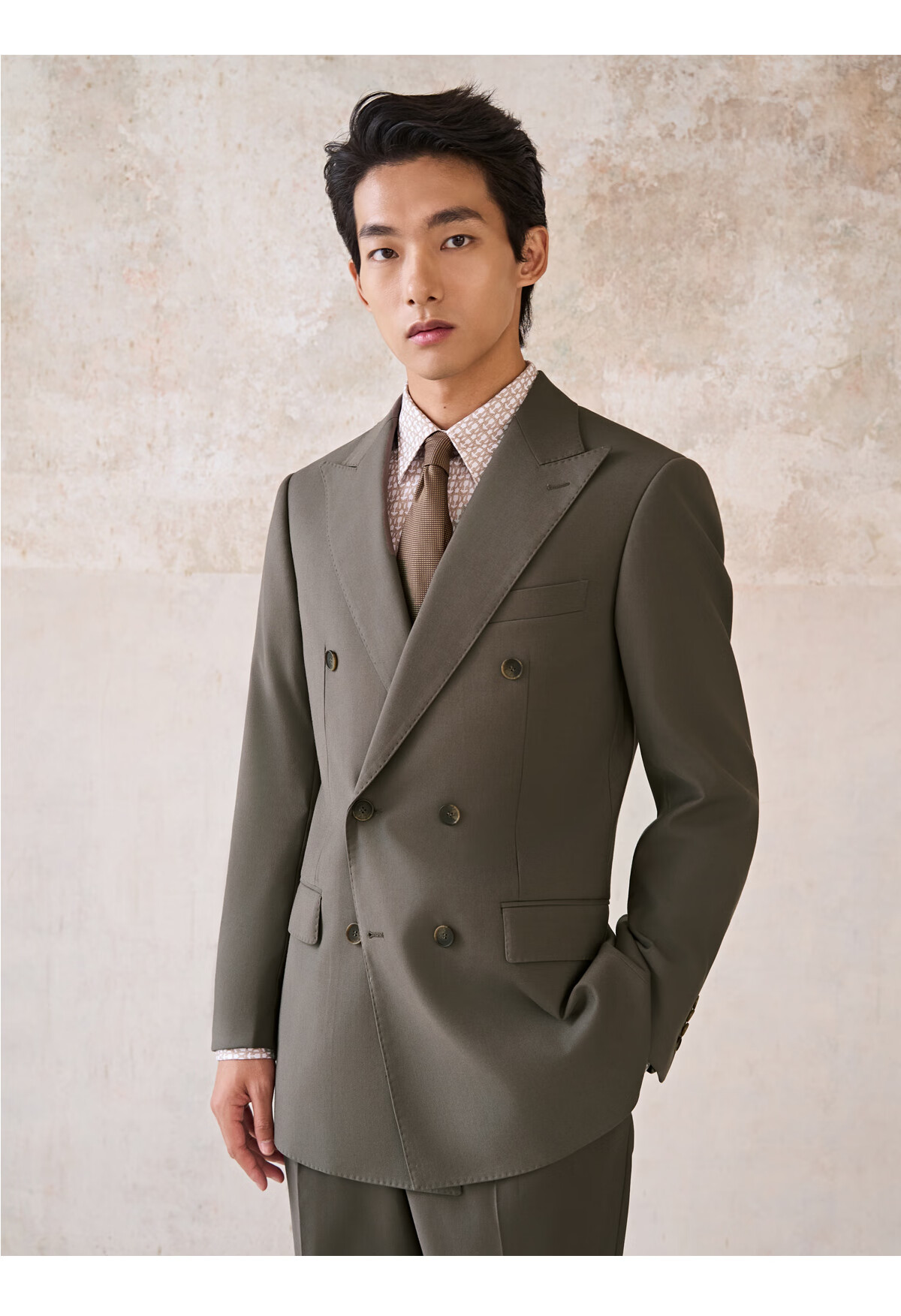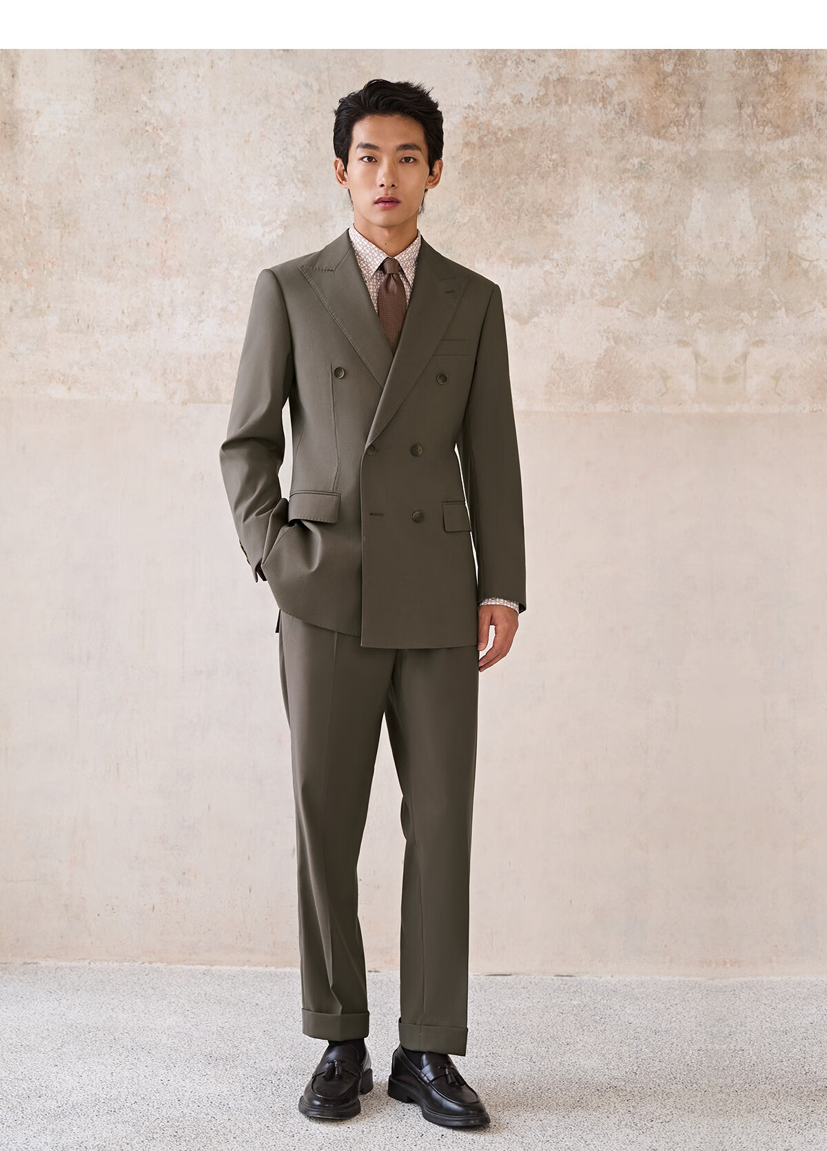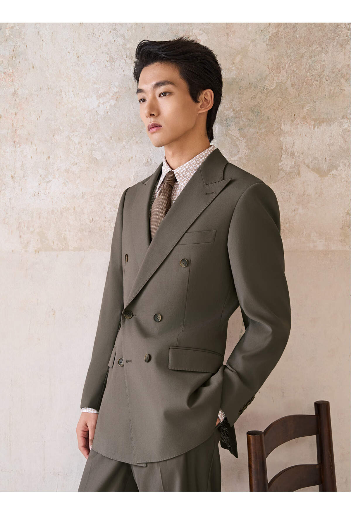 Guillomont double-breasted suit men's suit brown high-end suit business formal spring groom wedding dress suit top + pants Prussian blue 46