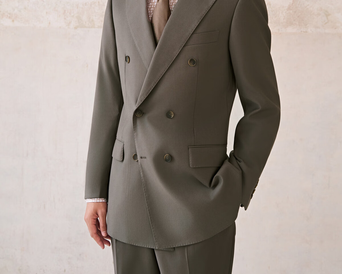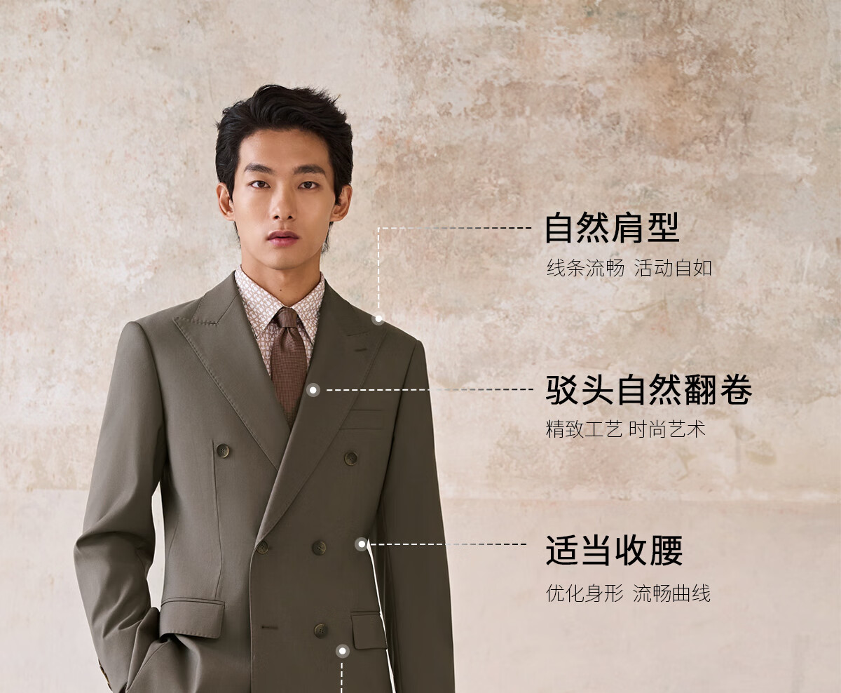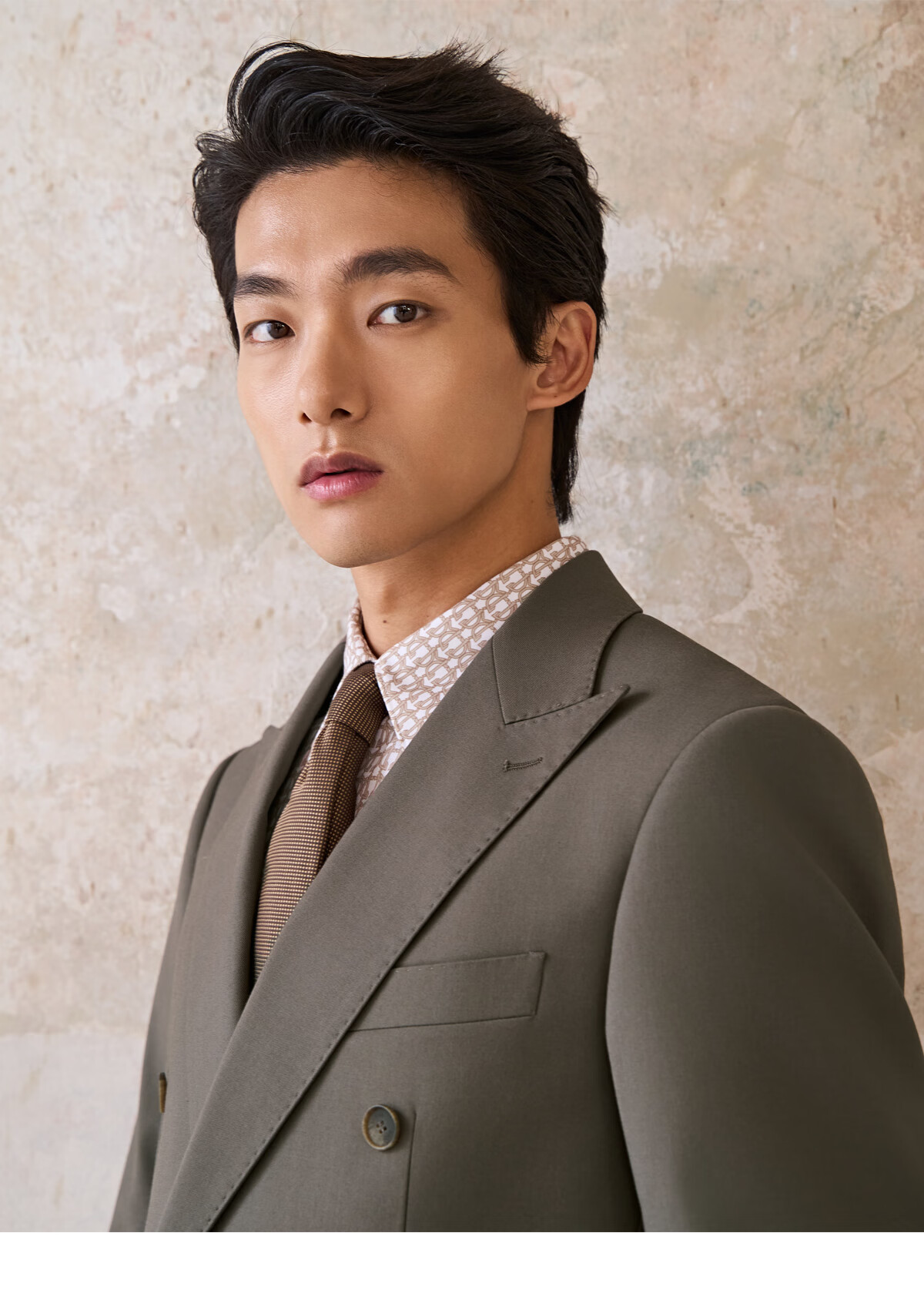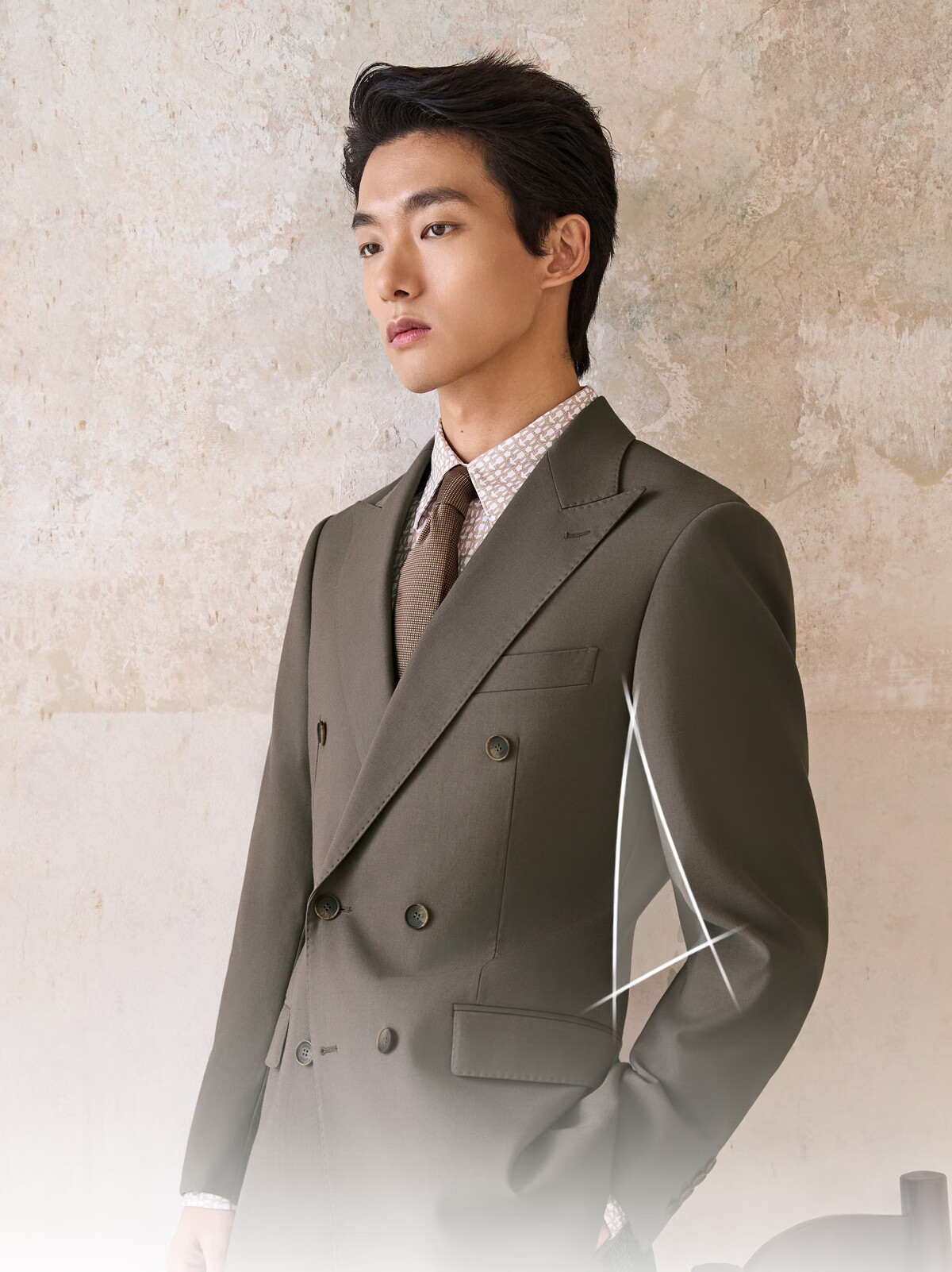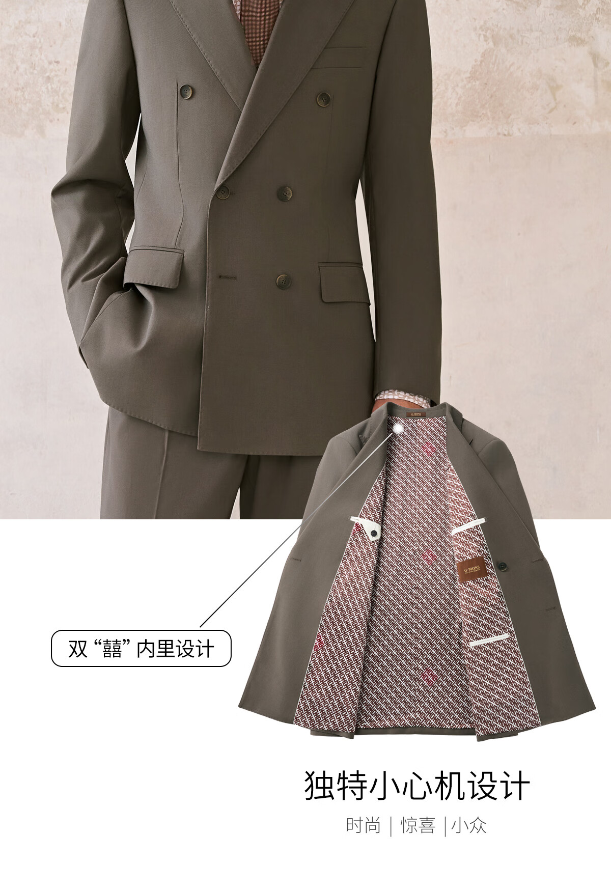 Guillomont double-breasted suit men's suit brown high-end suit business formal spring groom wedding dress suit top + pants Prussian blue 46