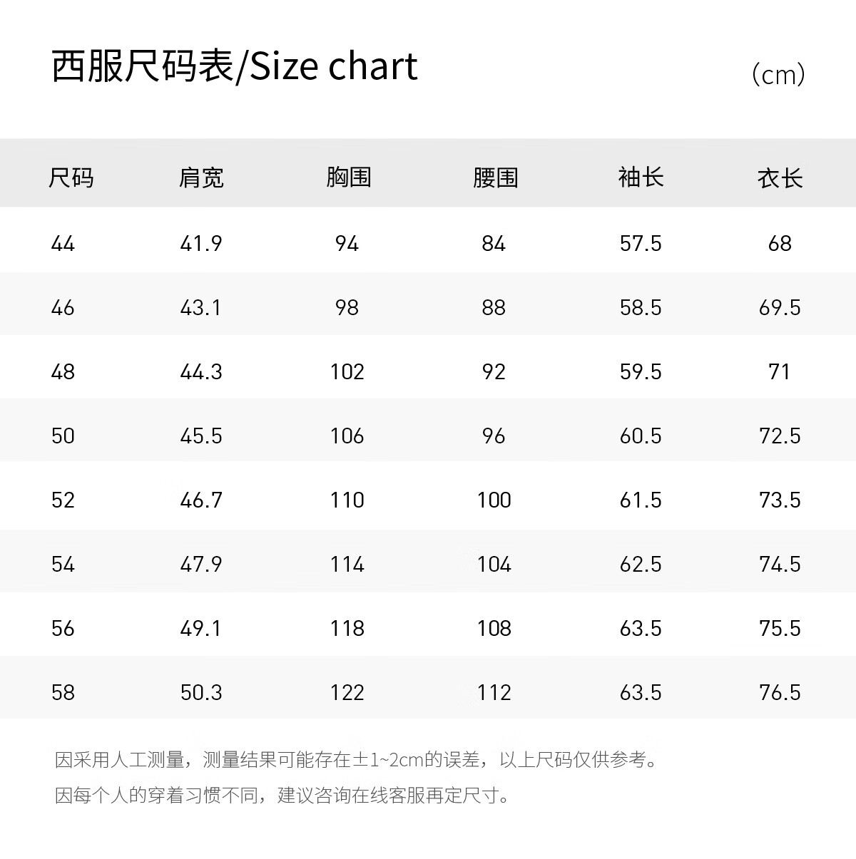 China (cm) 165 / 88-90 170 / 96-98 175 / 108-110 180 / 118-122 185 / 126-130