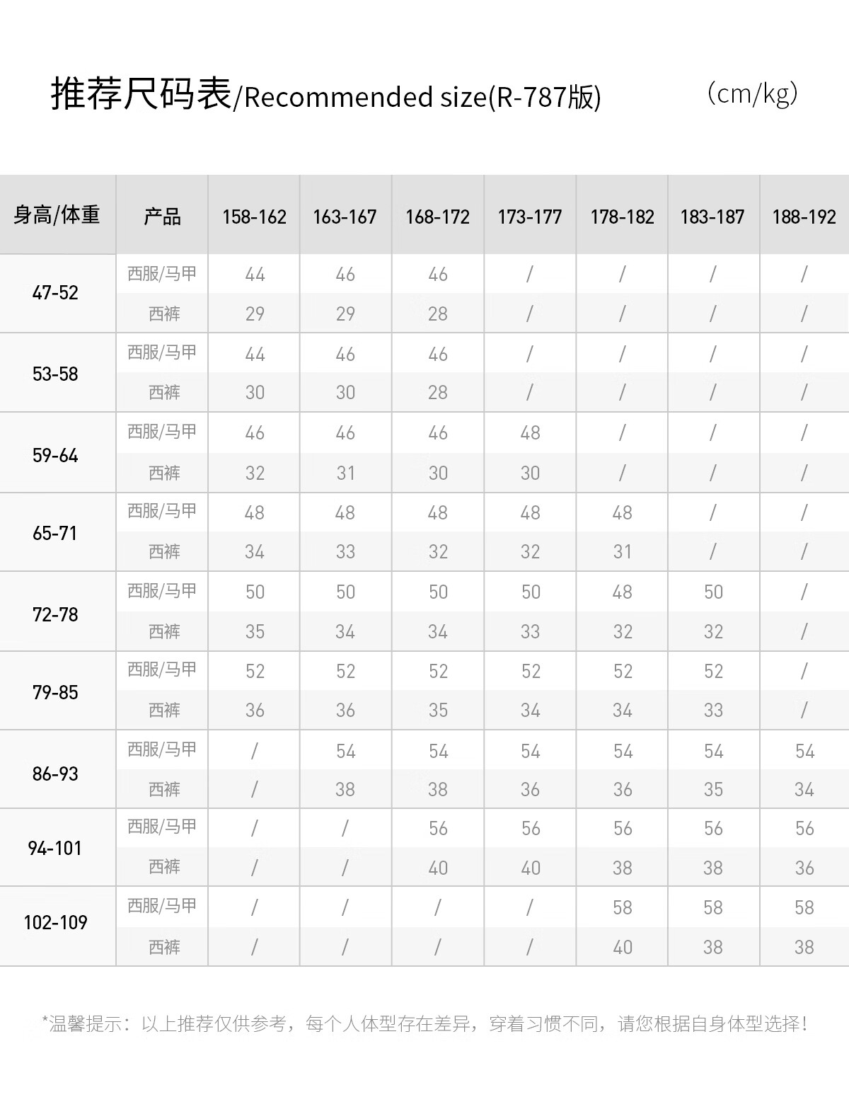 China (cm) 160-165/84-86 165-170 / 88-90 167-172 / 92-96 168-173 / 98-102 170-176 / 106-110