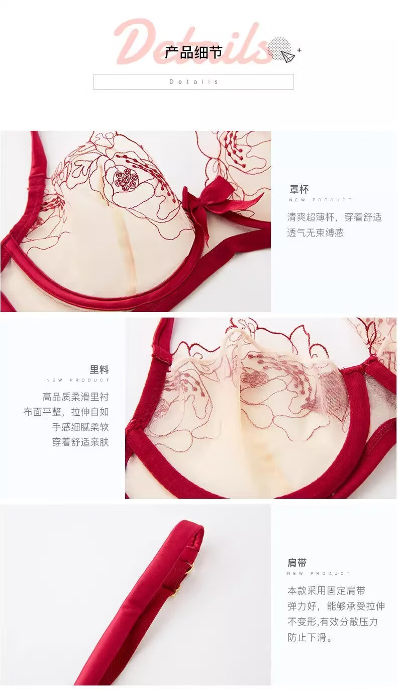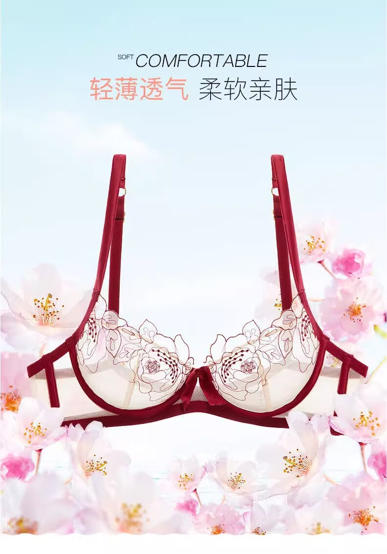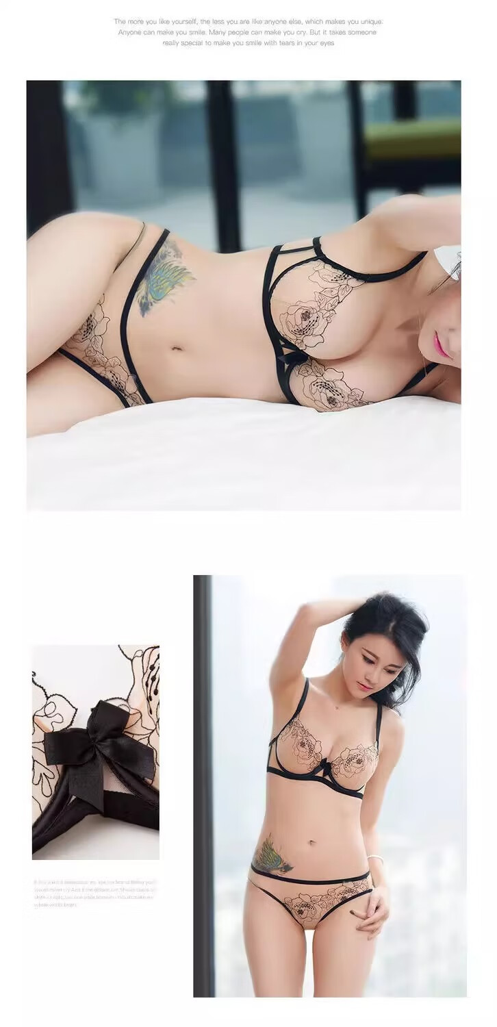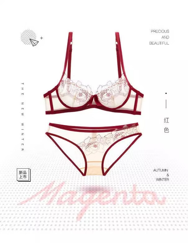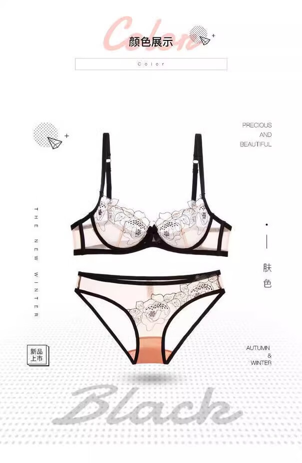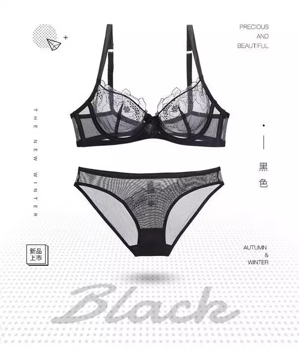 LangSha French pure lust underwear for women with big breasts, sexy lace women's thin push-up bra and panties set, large size bra, black line skin base L X 38/85ABC