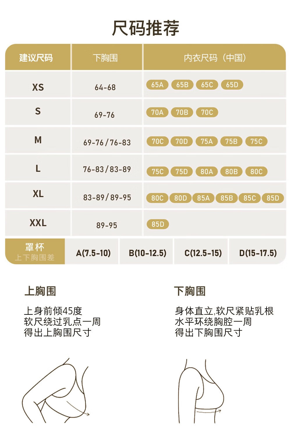 China (cm) 160-165/84-86 165-170 / 88-90 167-172 / 92-96 168-173 / 98-102 170-176 / 106-110