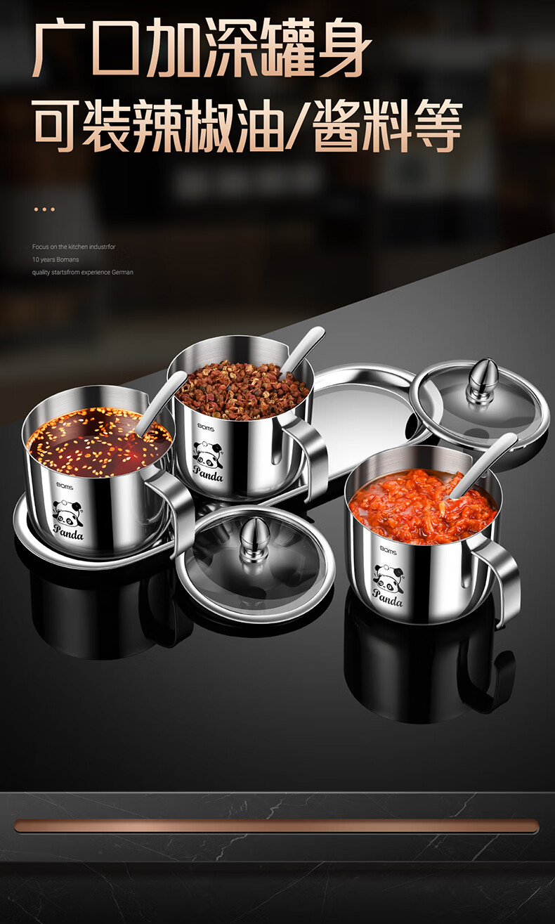 Bomans 316 stainless steel chili oil special jar kitchen oil spicy jar high temperature resistant seasoning bottle jar seasoning jar with spoon 316 steel chili oil jar 350ml single pack