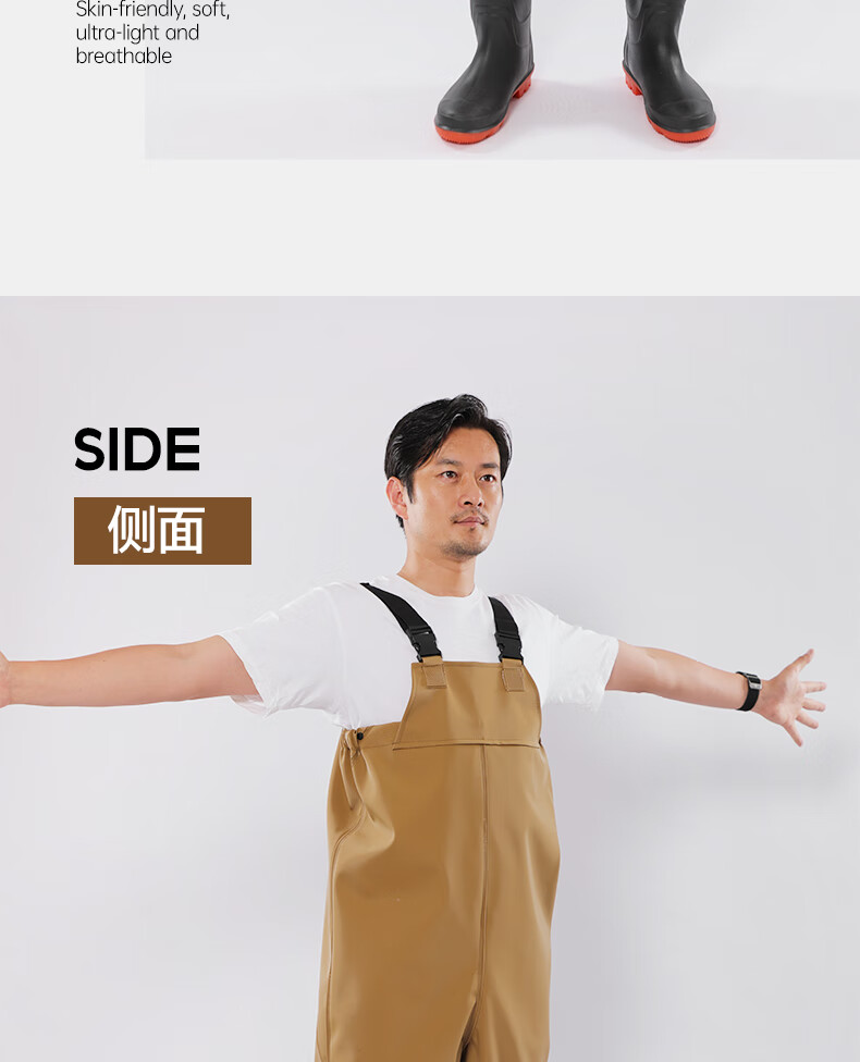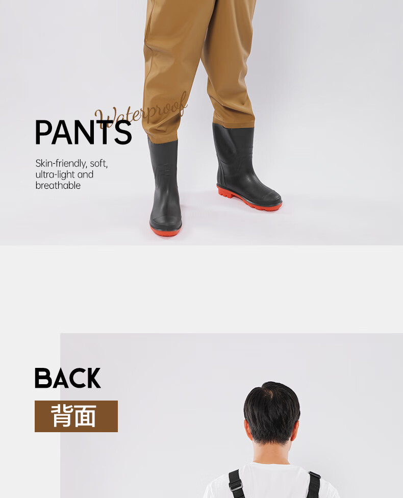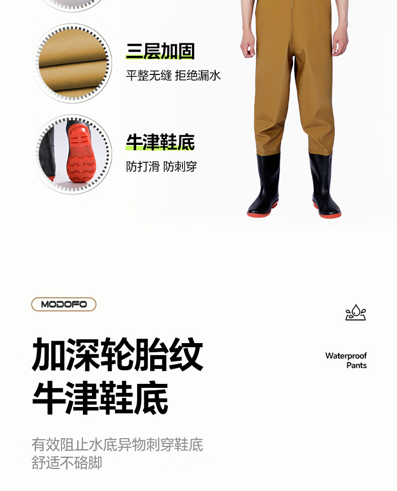 Mondorf waders, wading pants, sea suits, full-body waterproof fish pants, rain pants, lower body men's leather pants, jumpsuits, fishing pants, thickened, thickened 100 silk, fashionable khaki half, size 42, ultra-thick tendon sole shoes, shipped from Beijing warehouse