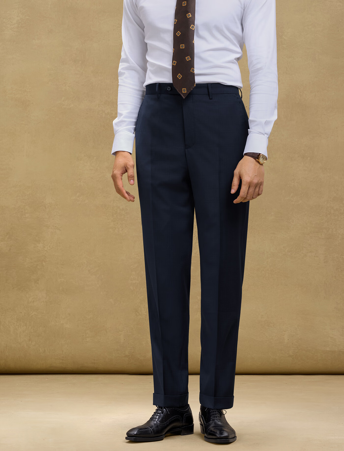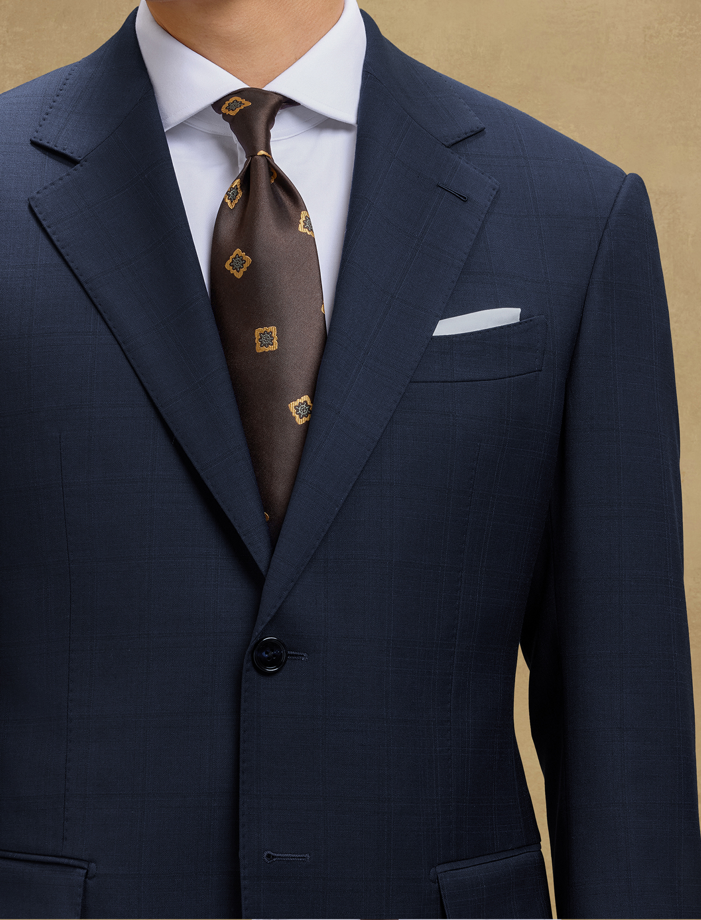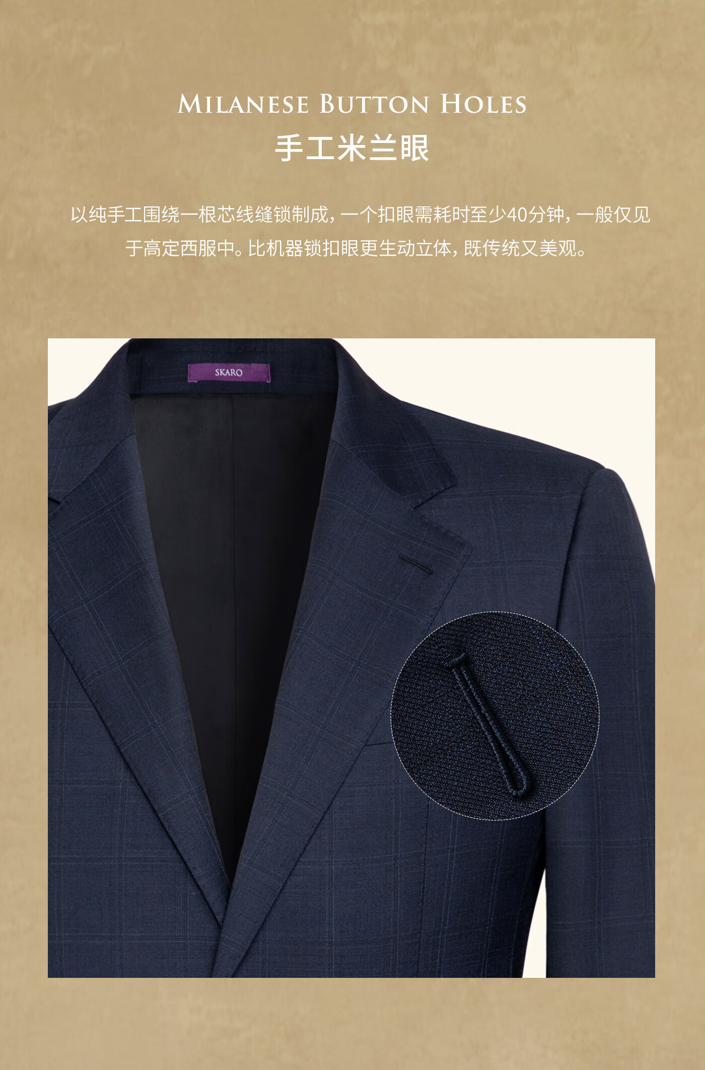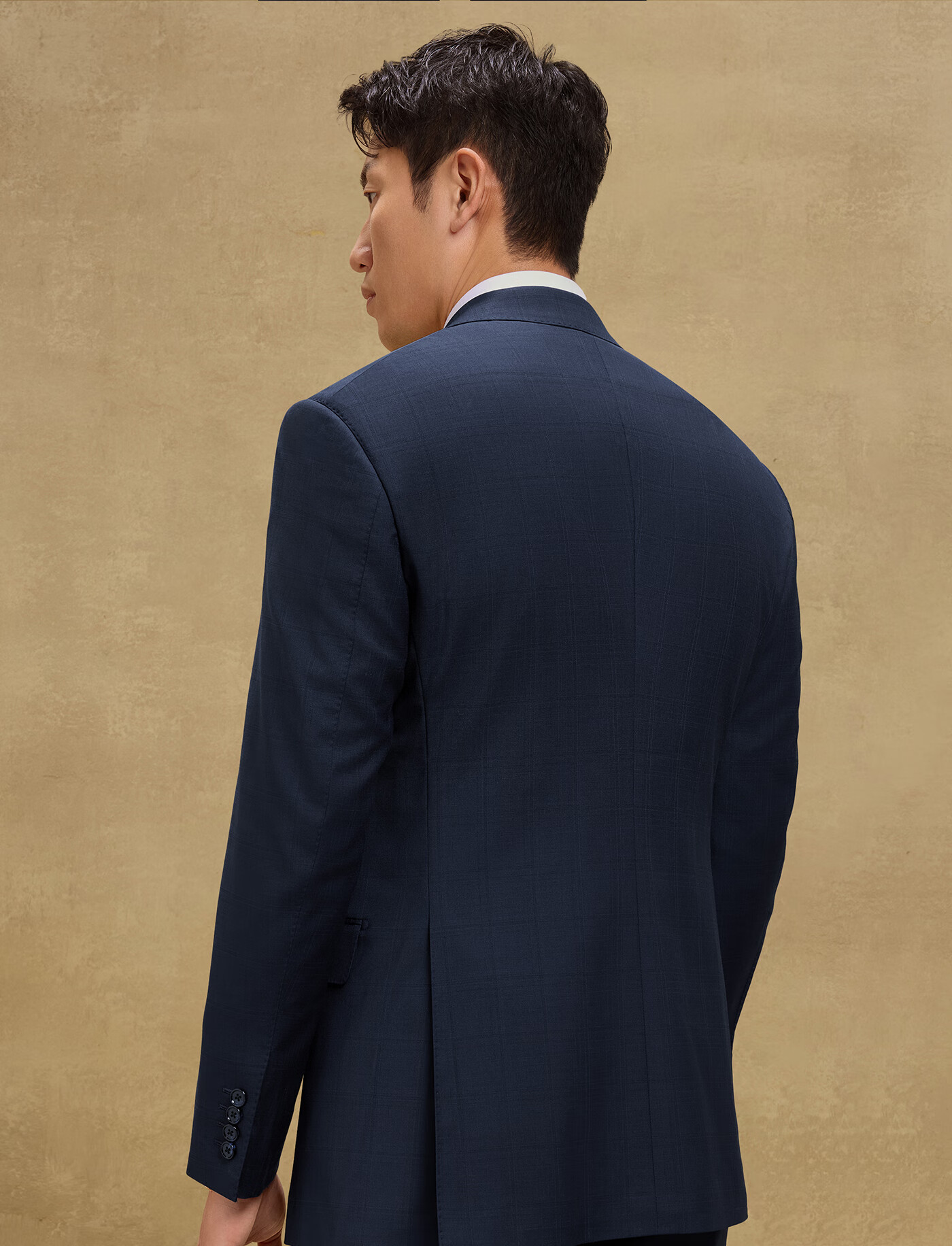 SKARO Handmade Milan Eye & Anti-wrinkle Navy Plaid Suit Men's Business Professional Formal Suit Navy Window Plaid SKG1671A Size 48 Top Please note the size of the trousers