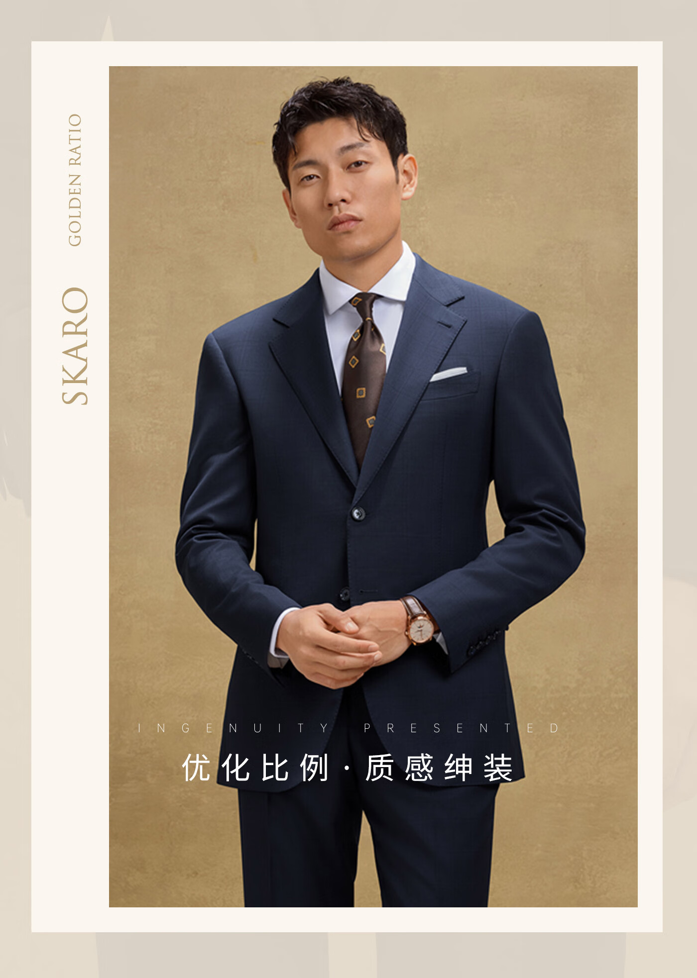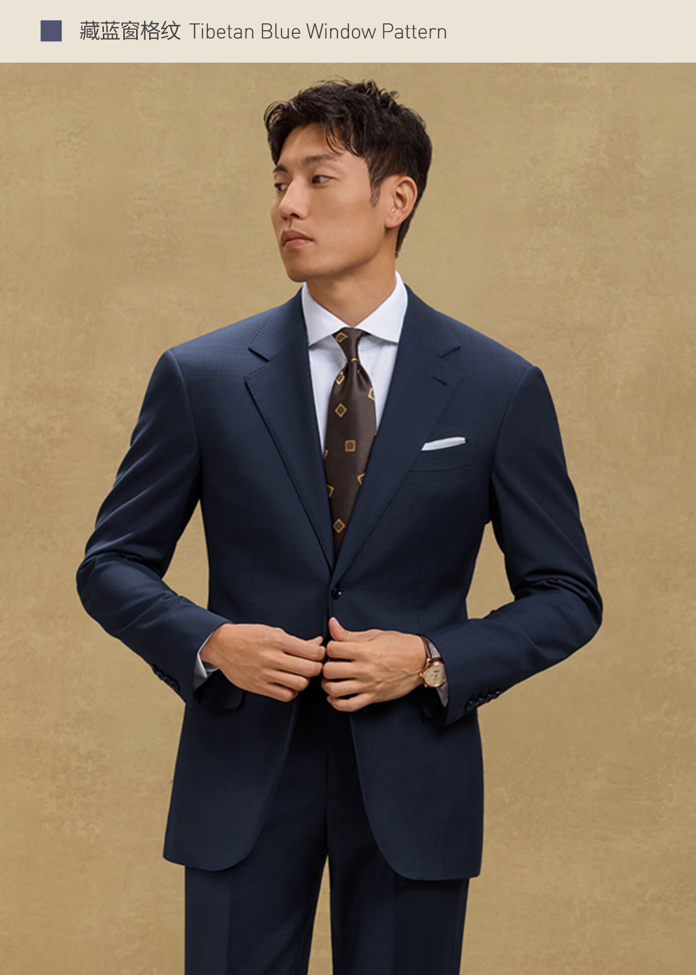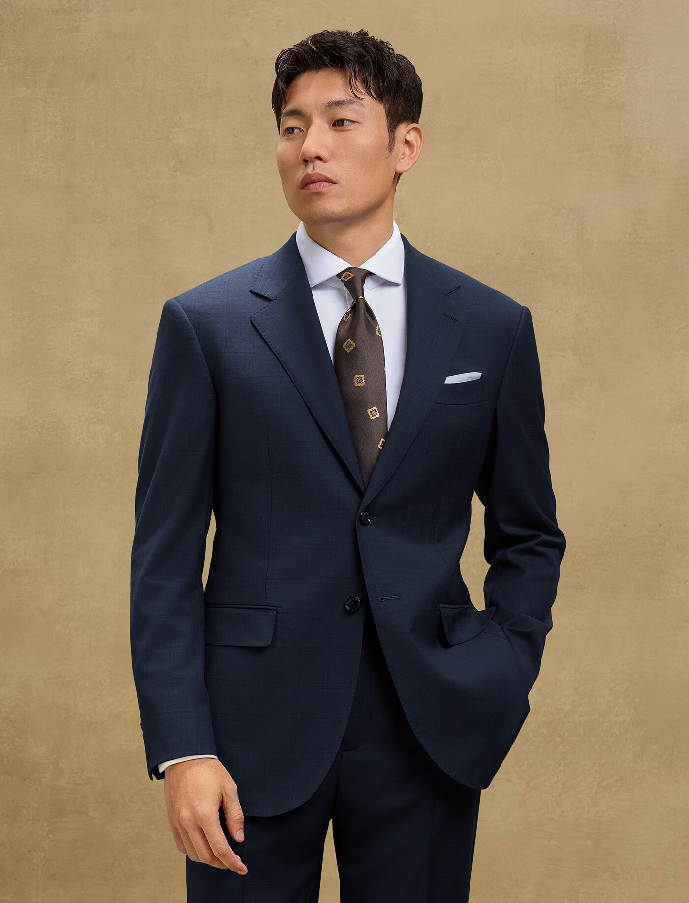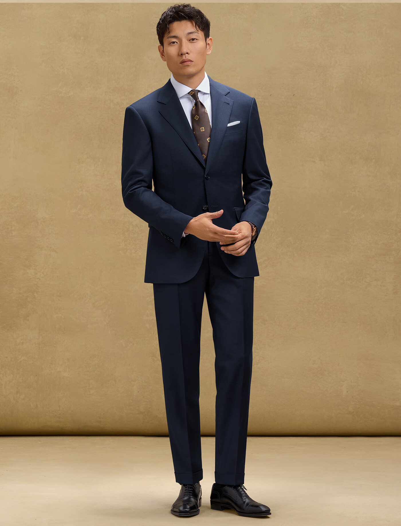 SKARO Handmade Milan Eye & Anti-wrinkle Navy Plaid Suit Men's Business Professional Formal Suit Navy Window Plaid SKG1671A Size 48 Top Please note the size of the trousers