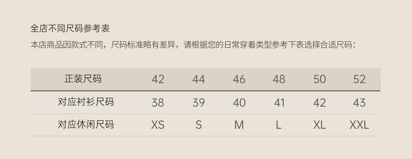 China (cm) 160-165/84-86 165-170 / 88-90 167-172 / 92-96 168-173 / 98-102 170-176 / 106-110