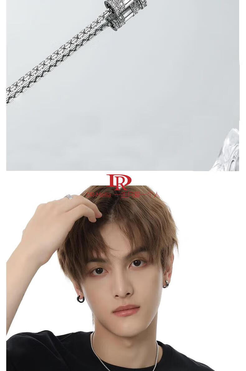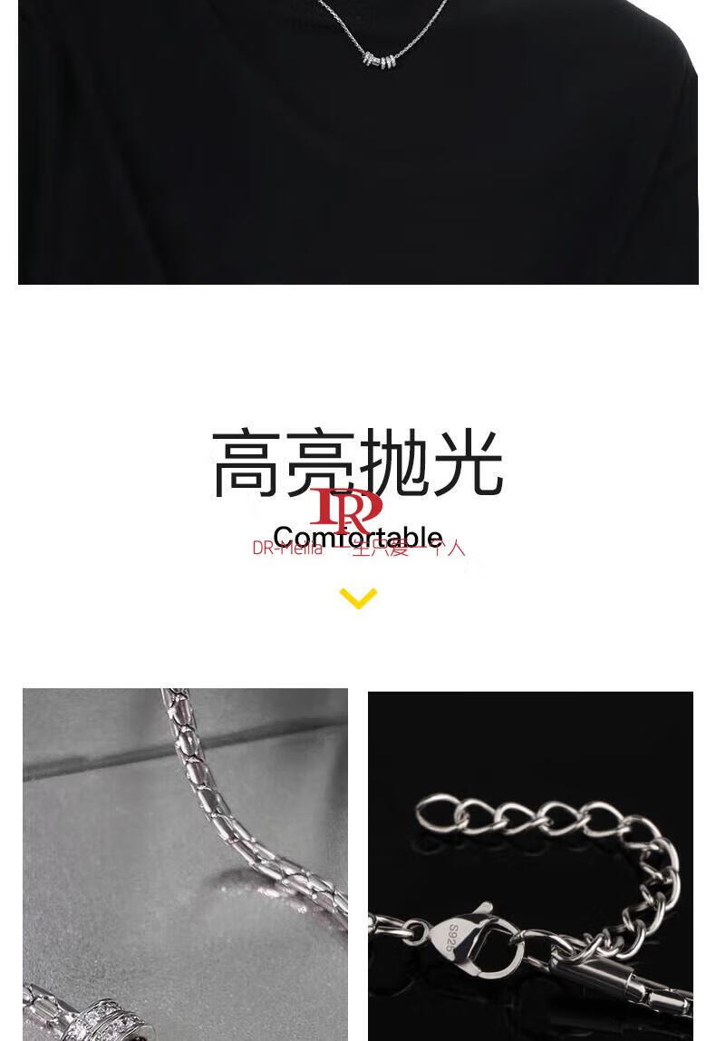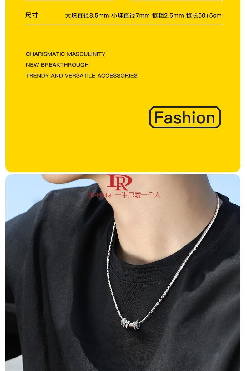 KPUS Valentine's Day gift, platinum transfer bead men's necklace, silver transfer bead necklace, diamond clavicle chain, niche boy style, silver transfer bead necklace (chain length 50+5cm)
