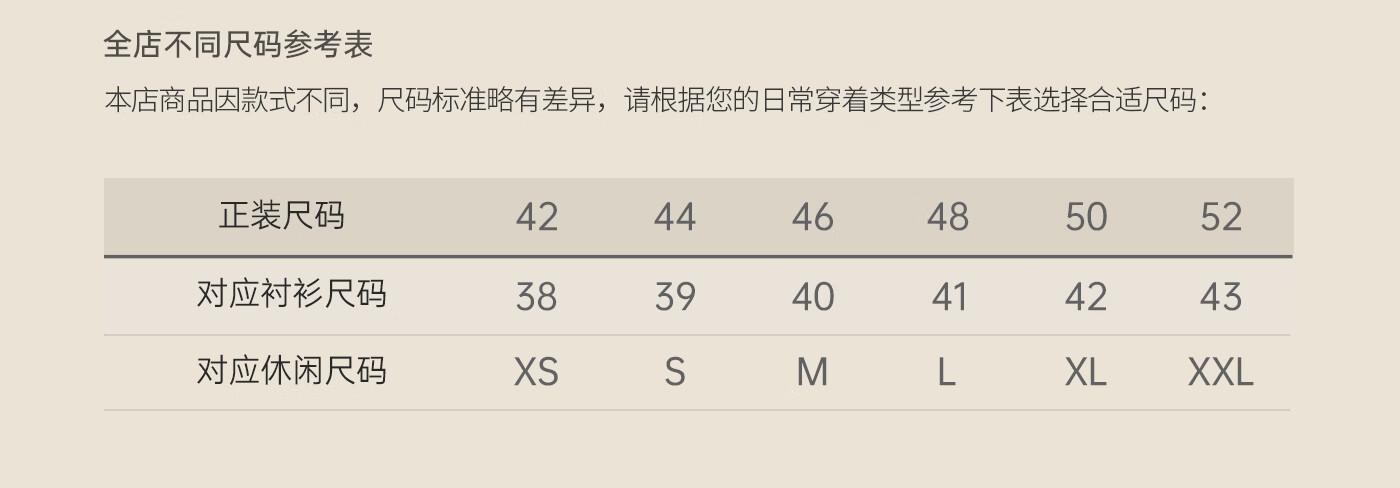 China (cm) 160-165/84-86 165-170 / 88-90 167-172 / 92-96 168-173 / 98-102 170-176 / 106-110