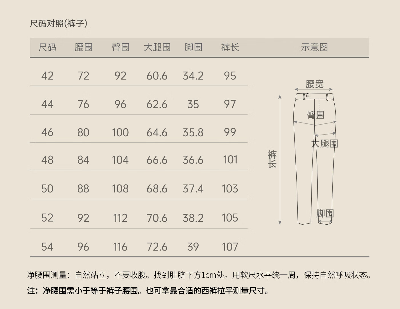 Outseam (cm) 99 cm 101.5 cm 104 cm 106.5 cm 109 cm