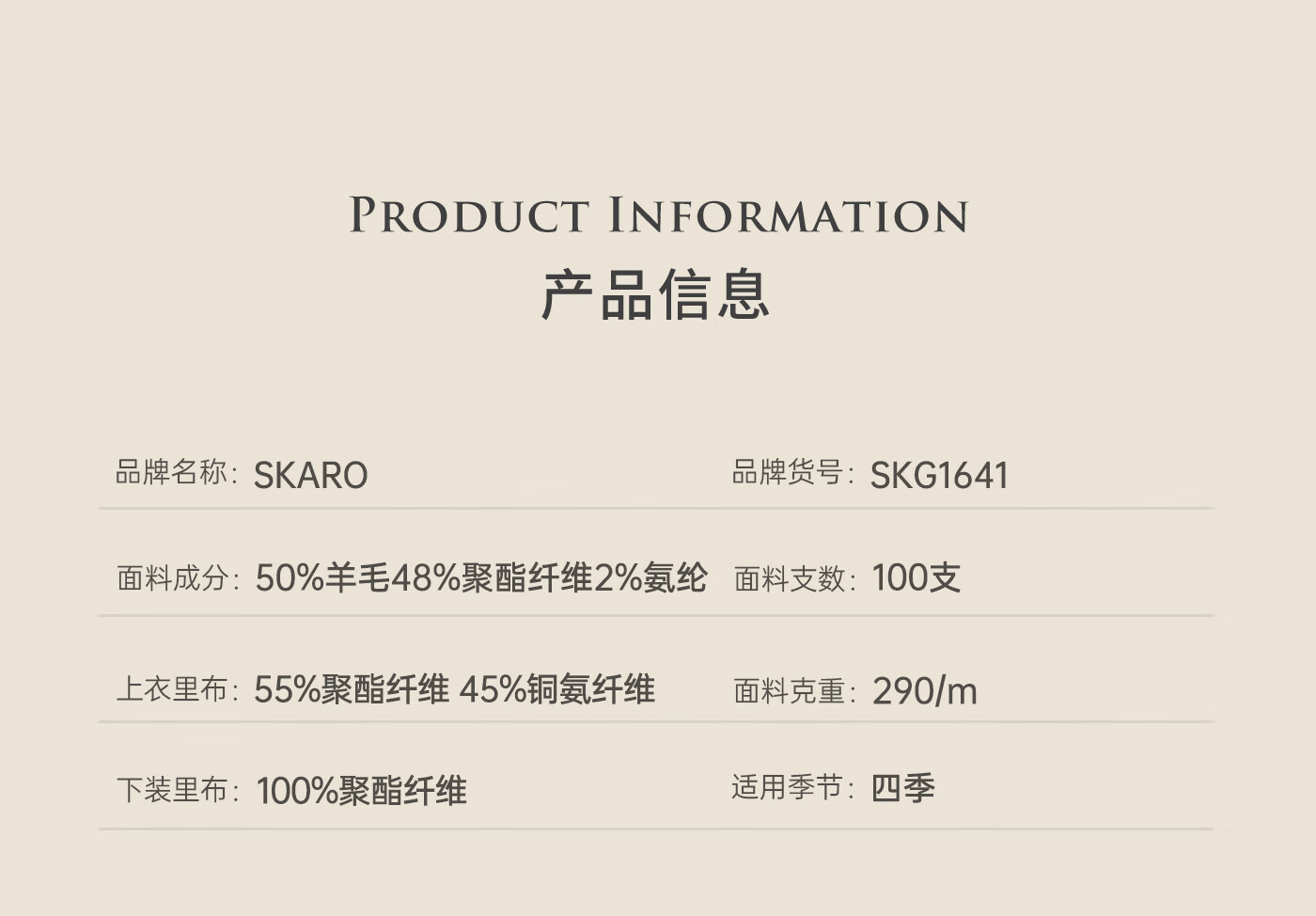 SKARO Handmade Milan Eye & Anti-Wrinkle Gray Suit Suit Men's Business Wedding Suit 2025 Gray SKG1641A Size 50 Top Please note the size of the trousers