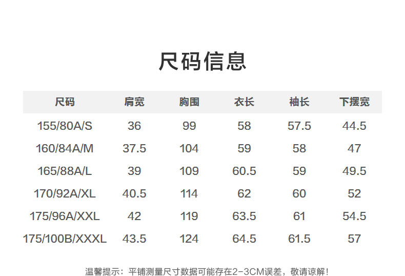 China (cm) 160-165/84-86 165-170 / 88-90 167-172 / 92-96 168-173 / 98-102 170-176 / 106-110