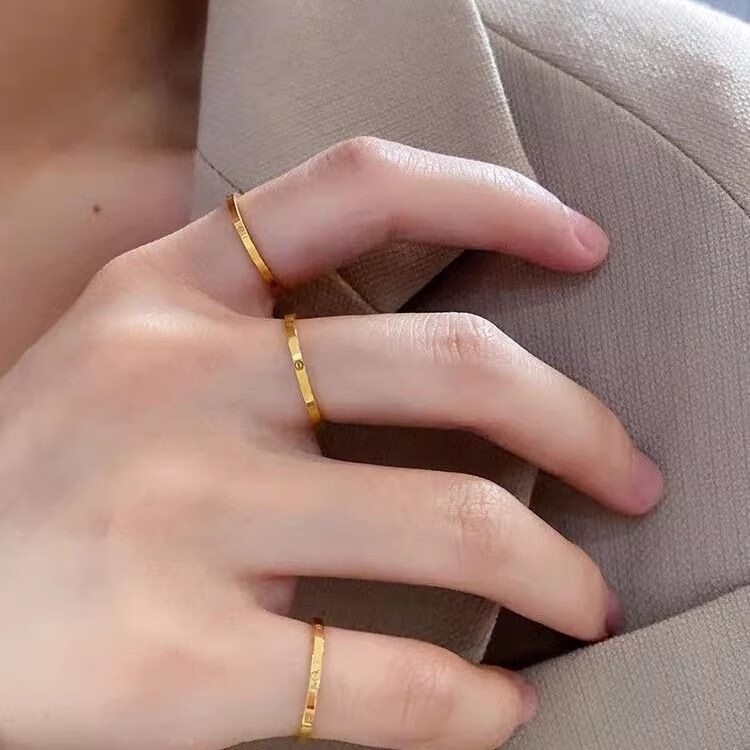 QUAMER Old Phoenix Gold Store Model Washable/Classic Versatile Ring Ring Simple Light Luxurious Exquisite Couple Dining Tail Ring One-word Beauty No. 7 (Reference 100-115 Jin Jin is equal to 0.5 kg) (Height