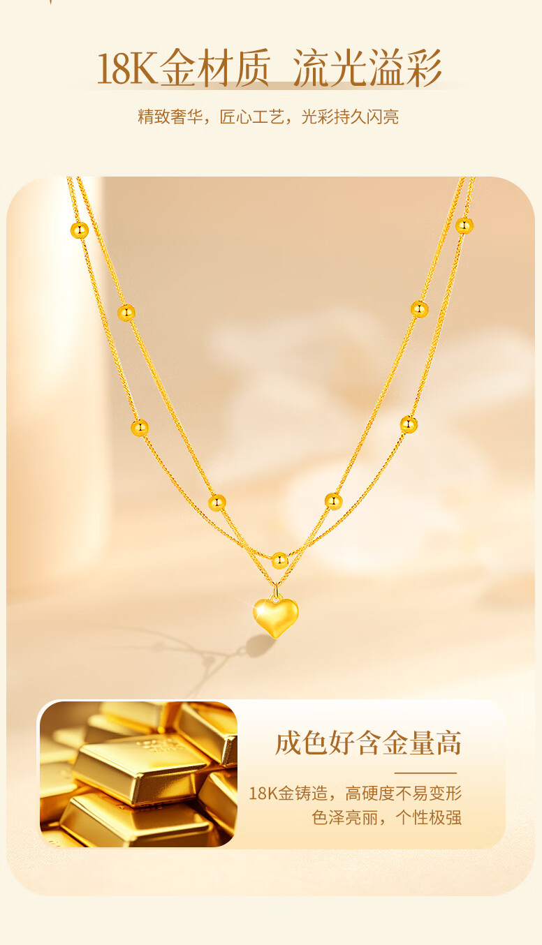 Chinese gold love gold necklace nine transfer beads 18K gold chain set birthday gift for girlfriend and wife's birthday practical 18K gold love chain set