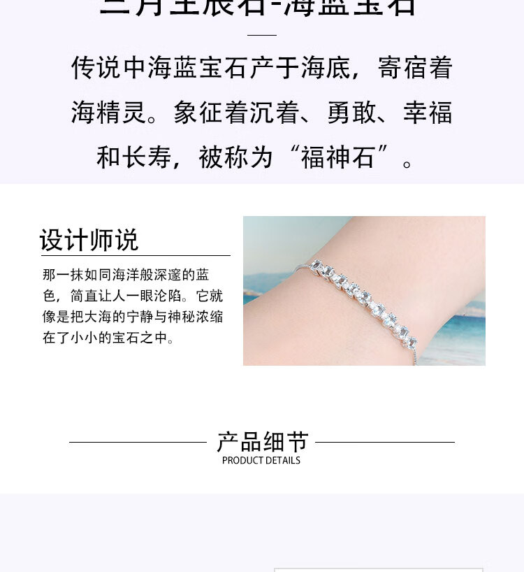 CAJJ Francois 1.46 carat aquamarine bracelet 925 silver gift for personal wear simple natural colored gemstone aquamarine bracelet