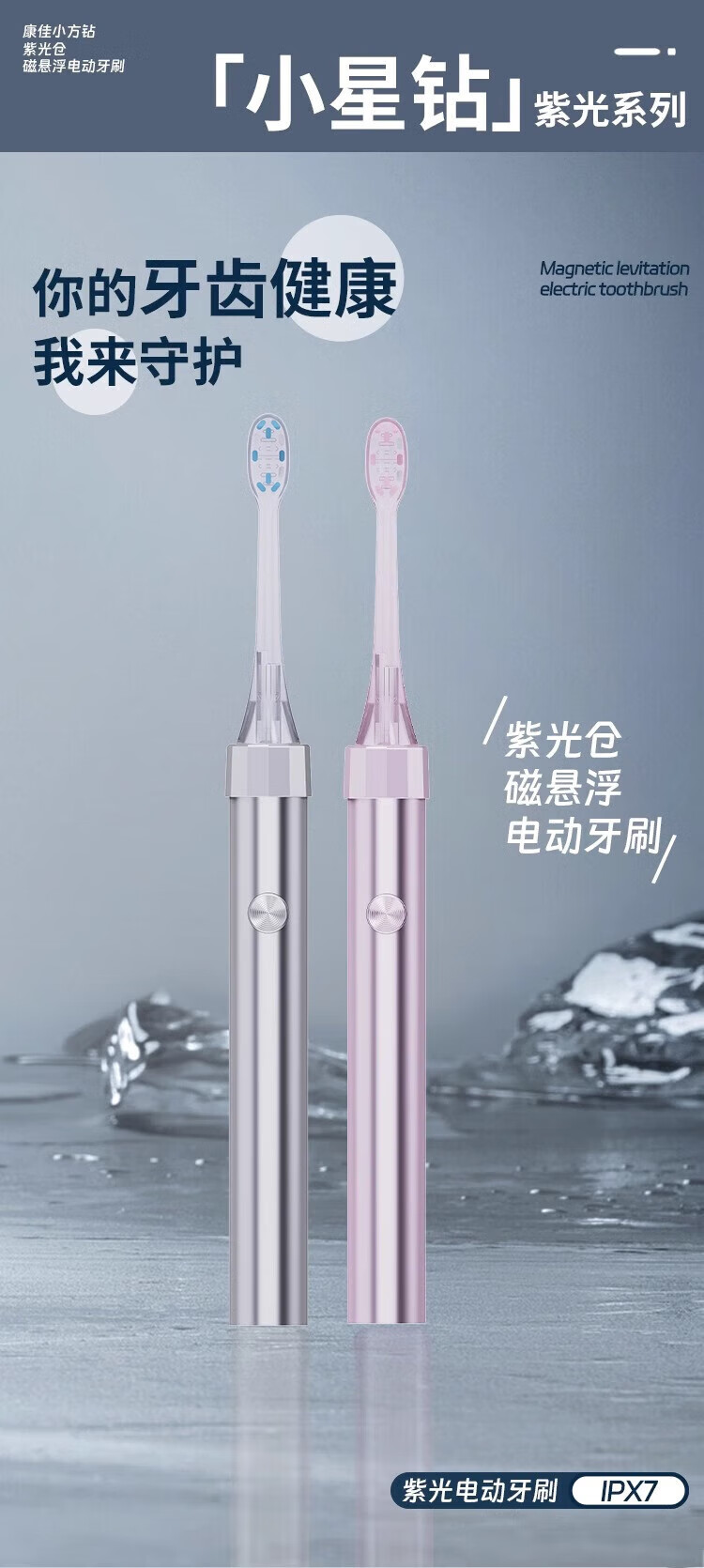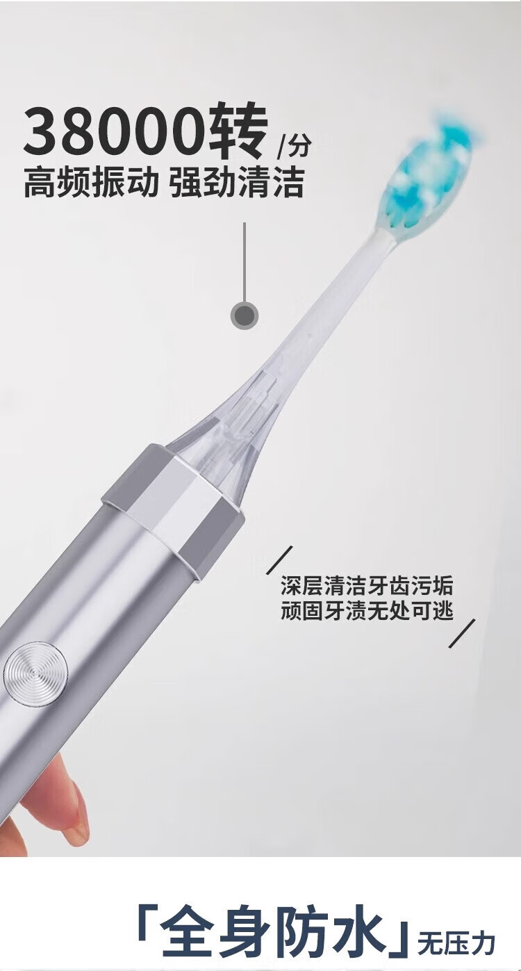 KONKA Small Star Diamond Electric Toothbrush Rechargeable Wireless Charging Adult Sweeping Vibrating Soft-bristled Portable Toothbrush Silver White 2 Brush Heads