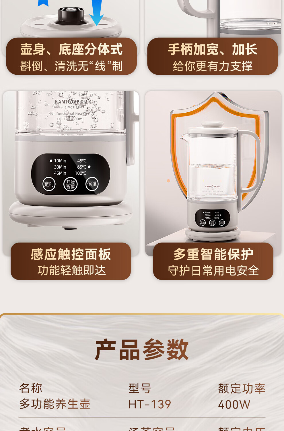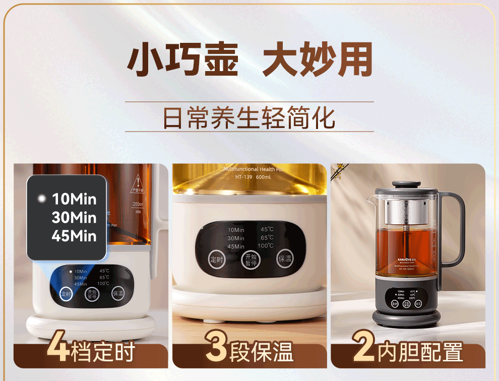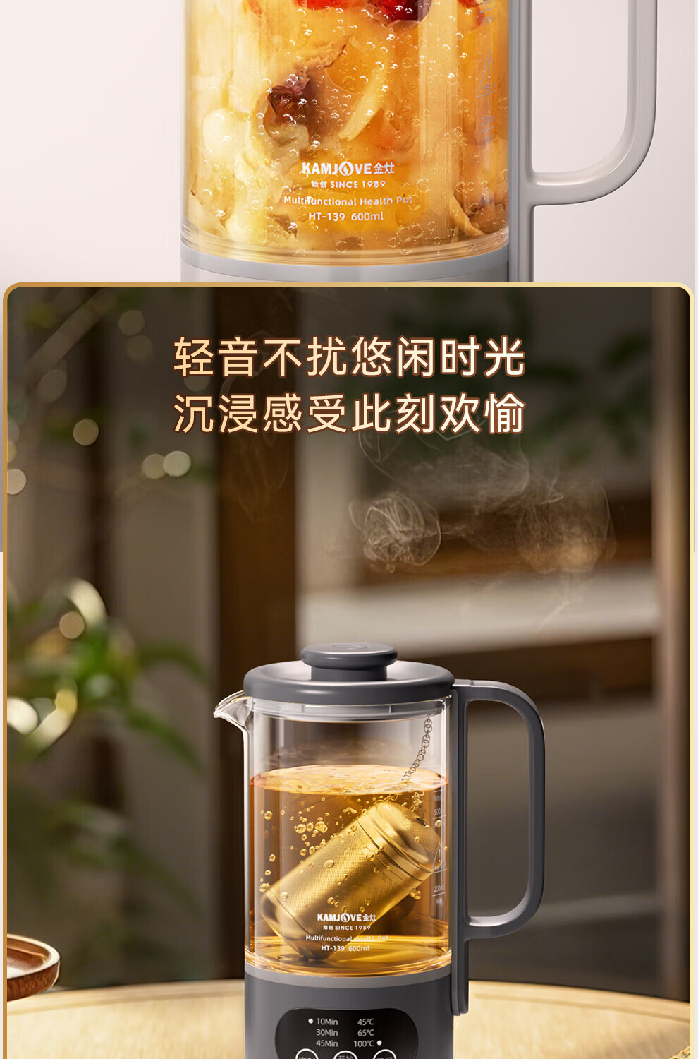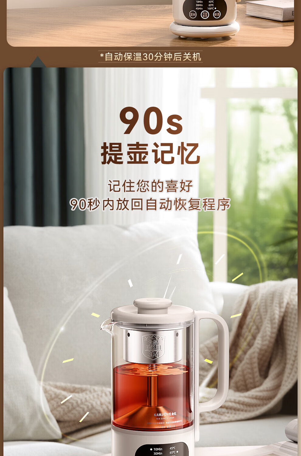 KAMJOVE small health pot fully automatic spray tea boiler kettle integrated constant temperature kettle insulated hot water kettle flower teapot HT-139 titanium gray 0.6L