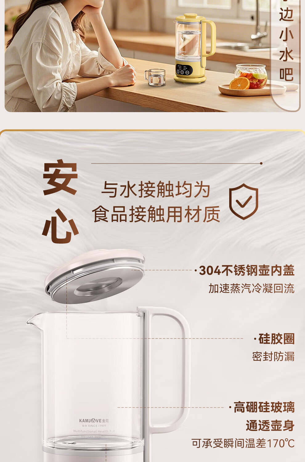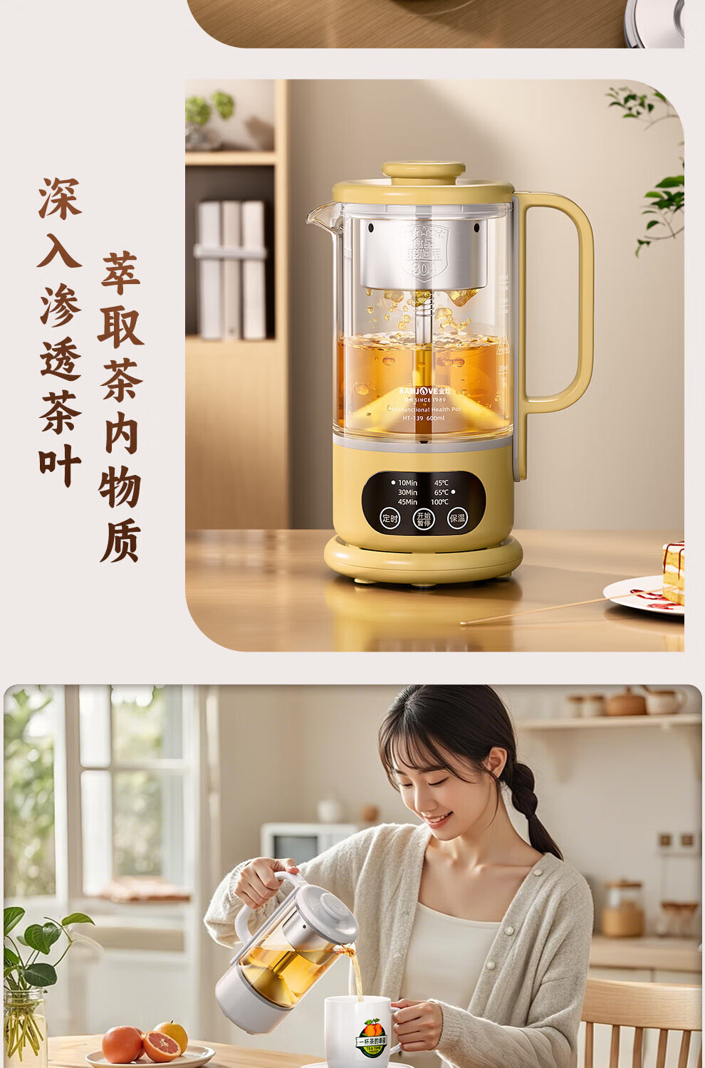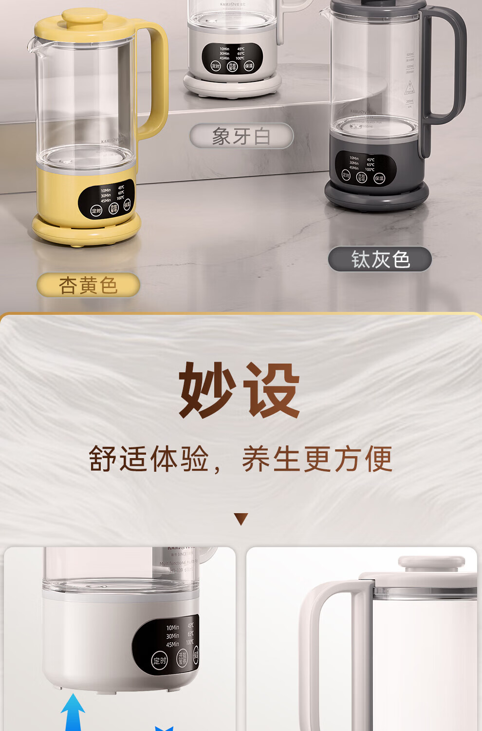 KAMJOVE small health pot fully automatic spray tea boiler kettle integrated constant temperature kettle insulated hot water kettle flower teapot HT-139 titanium gray 0.6L