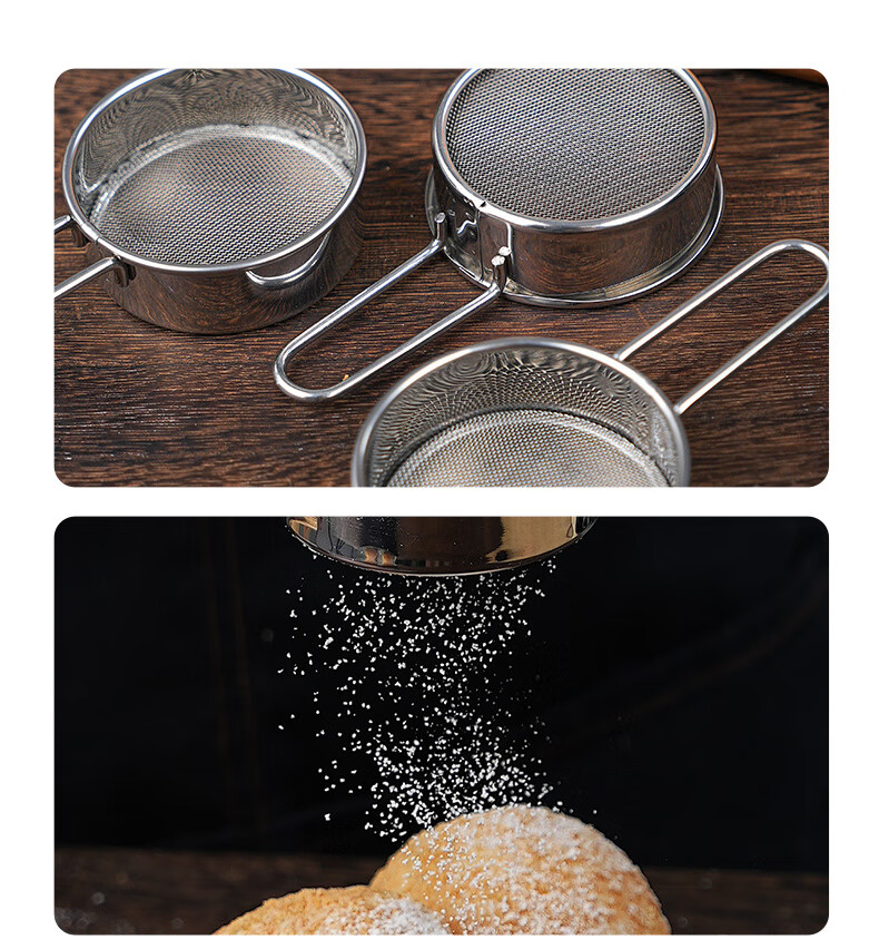 Detif 304 stainless steel powdered sugar sieve hand-held flour sifter matcha cocoa powder sieve mesh duster household baking tools 40 mesh mini powder sieve 1