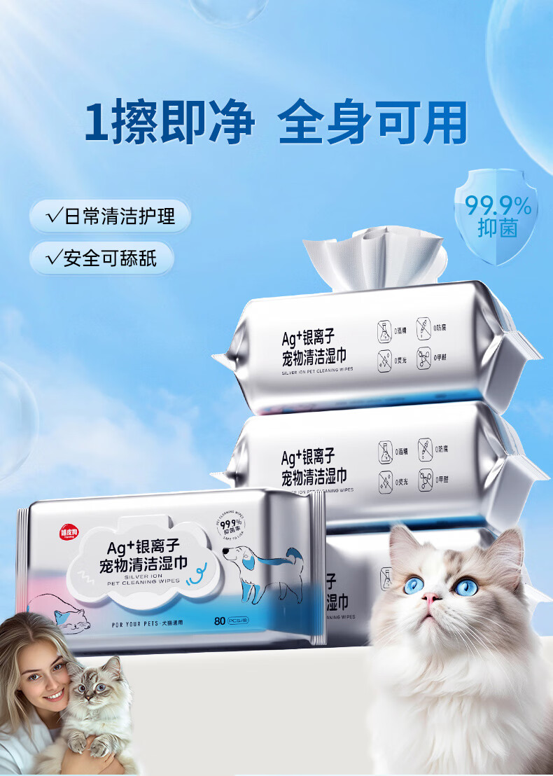 Hipdog (hipidog) hippie dog pet wipes, cat and dog sterilization and deodorization wet wipes, no-rinse tear stain cleaning supplies, 12 packages, antibacterial and deodorizing