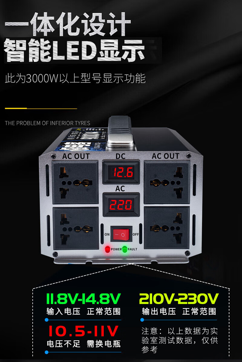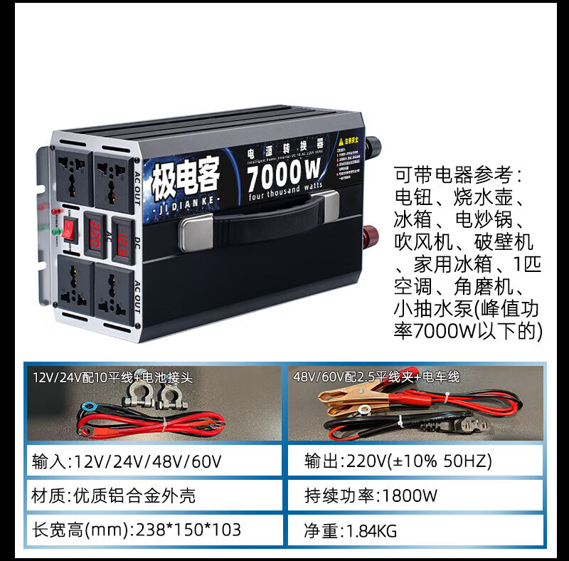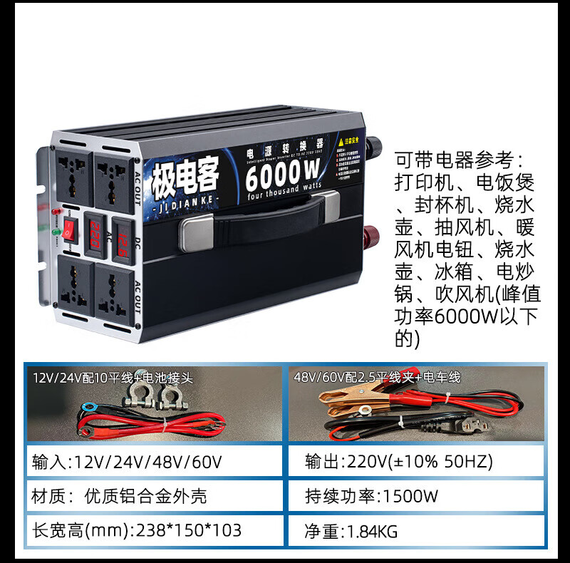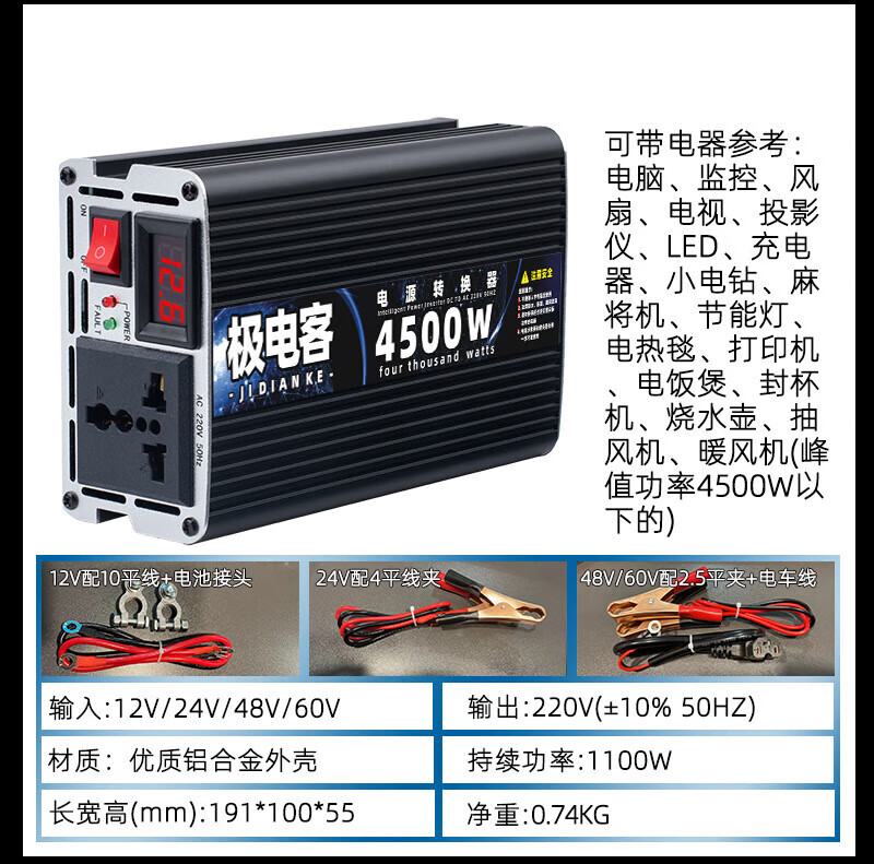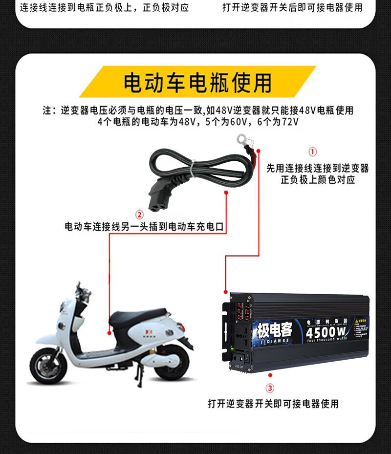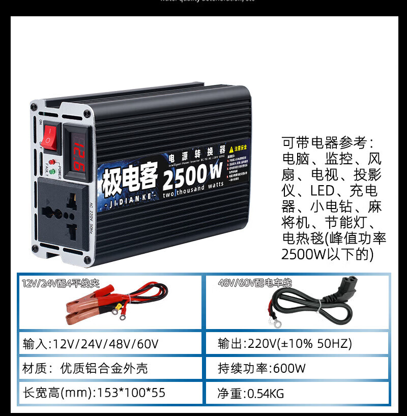 Inverter electric vehicle tricycle inverter stall 12V24V48V60V72V to 220V battery converter 12V to 220V continuous power 600 peak power 2500W