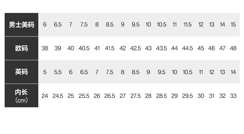USA 5 5.5 6 7 7.5 8.5 9.5 10 10.5 12 13 14 15.5