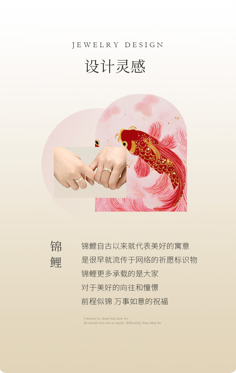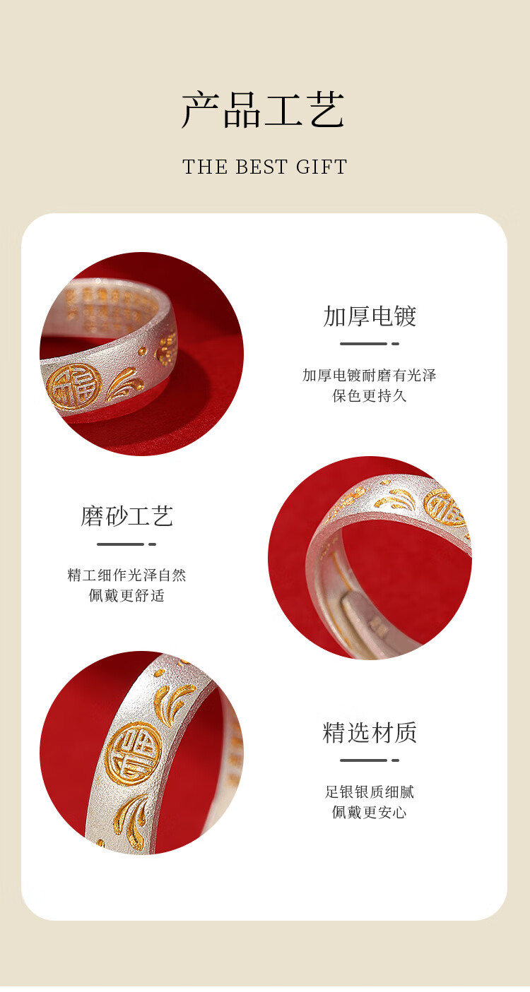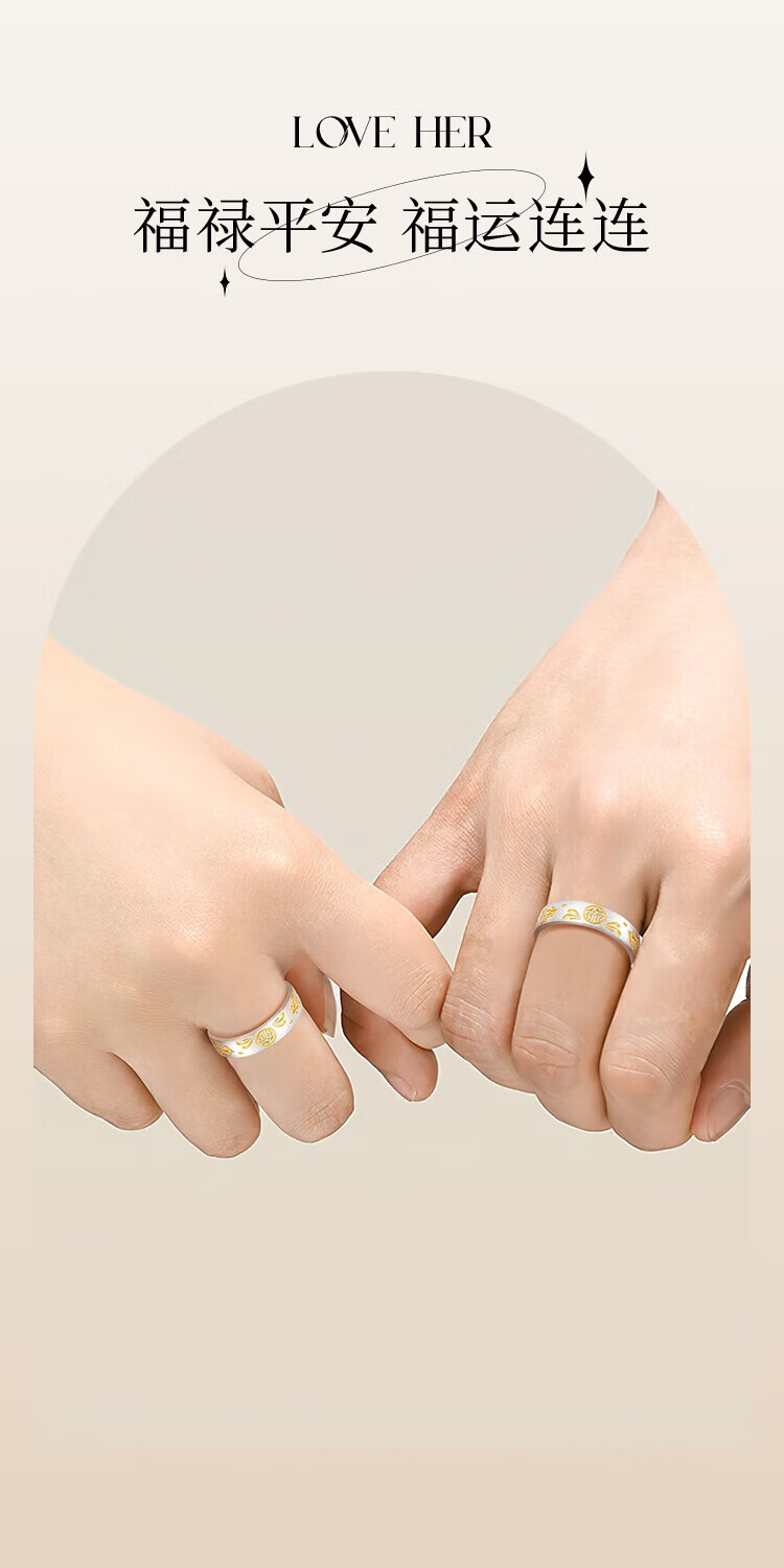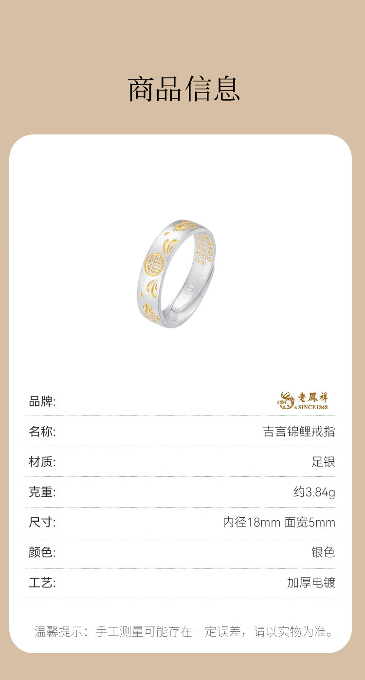 Lao Fengxiang's Auspicious Words Pure Silver Ring for Women, Couple Ring, Practical Living Birthday and Anniversary Gift for Girlfriend and Wife, Lucky Words Koi Single Ring, Free Brand Gift Box