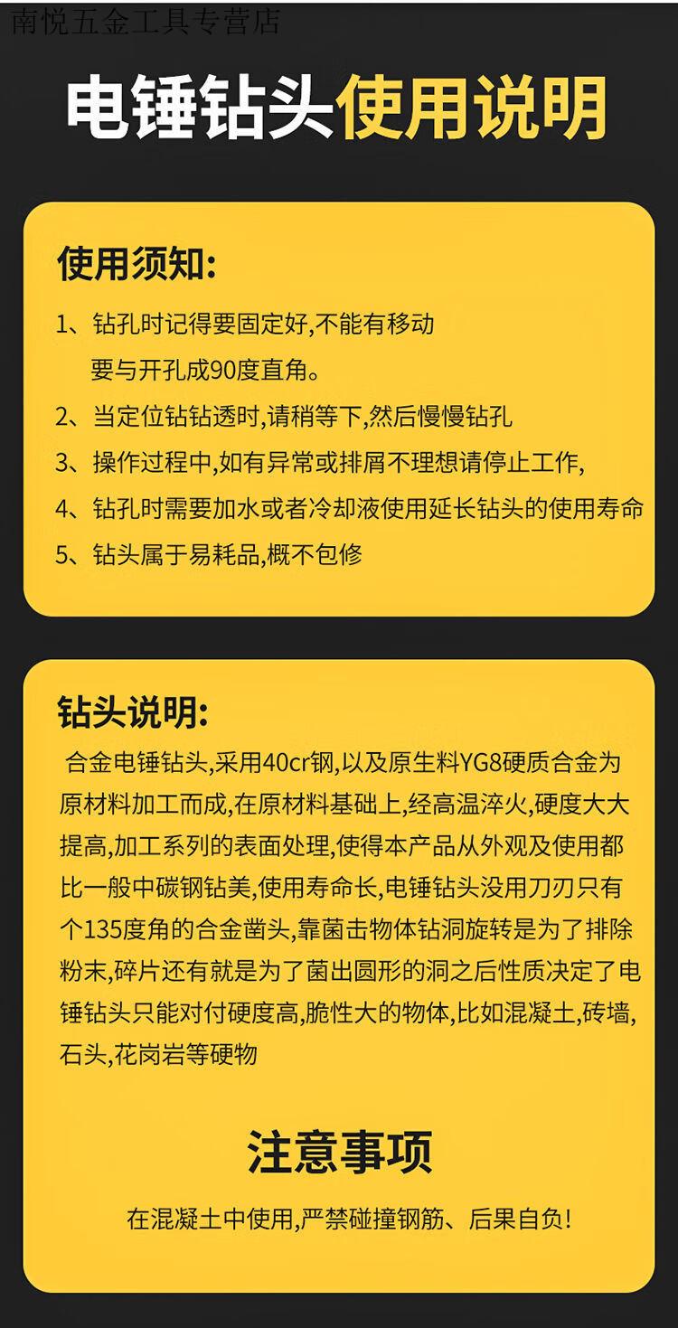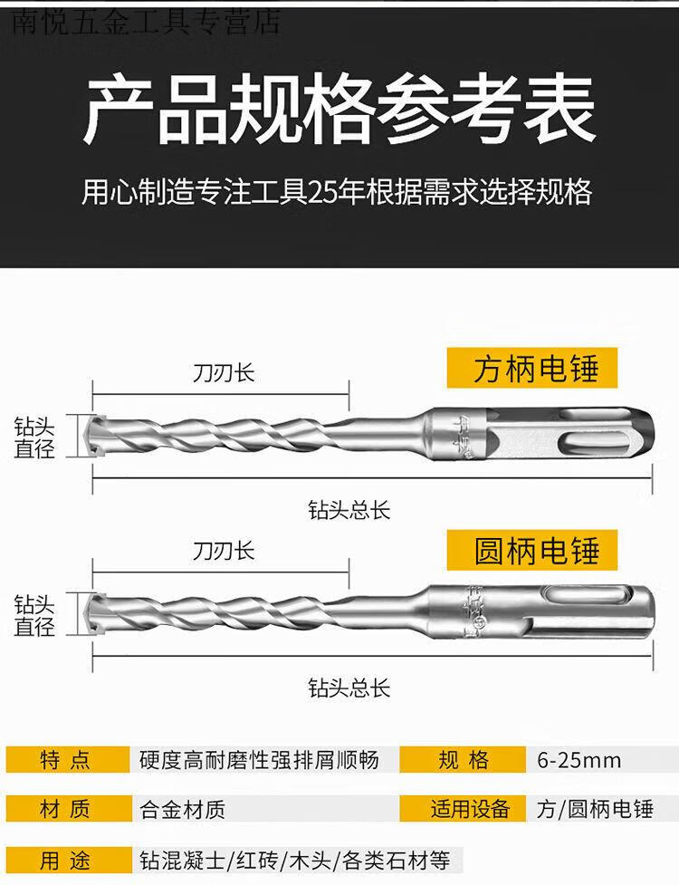 An Junsheng Electric Hammer Drill Bit Extended Wall Impact Drill Bit Household Tool Accessories Set Square Shank Round Shank Four Pit Two Slots Drill Bit High Carbide Drill Bit Square Shank Four Pit 6*110mm 1 piece