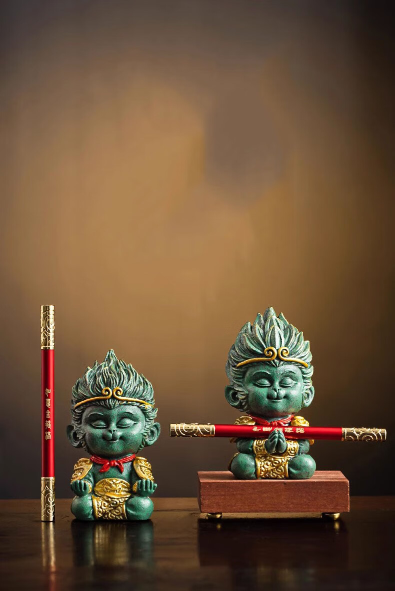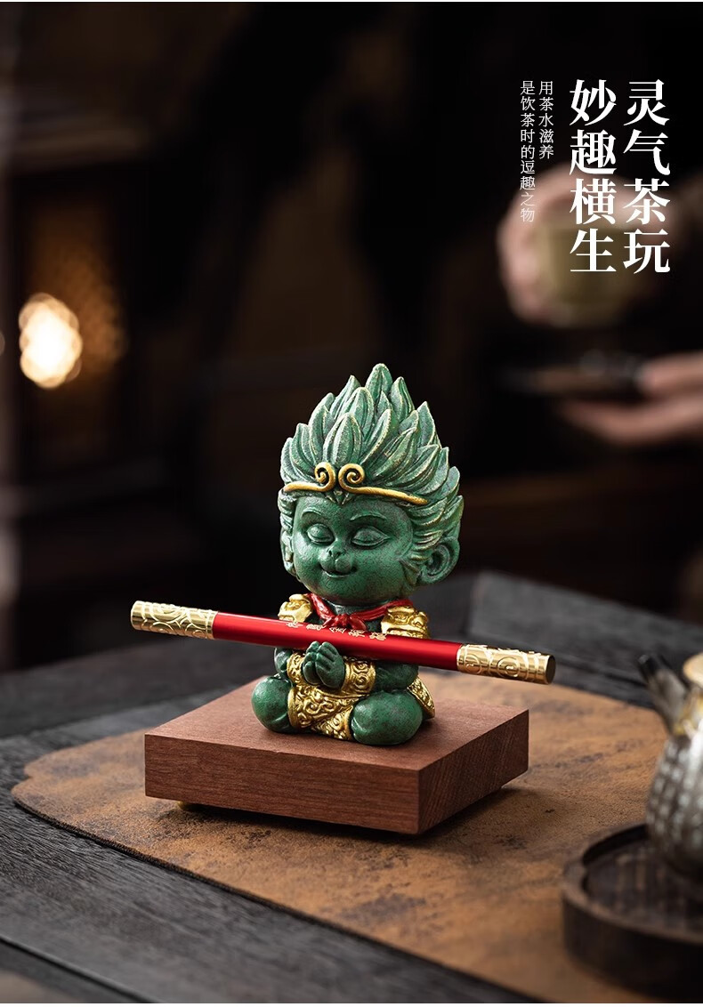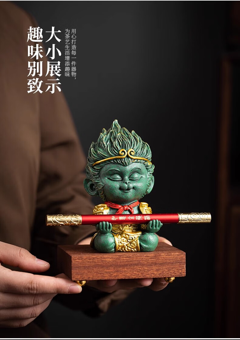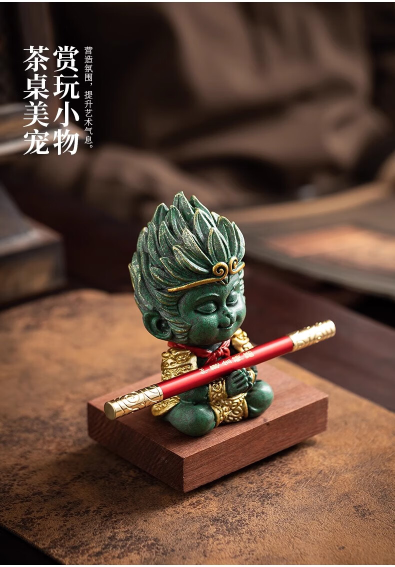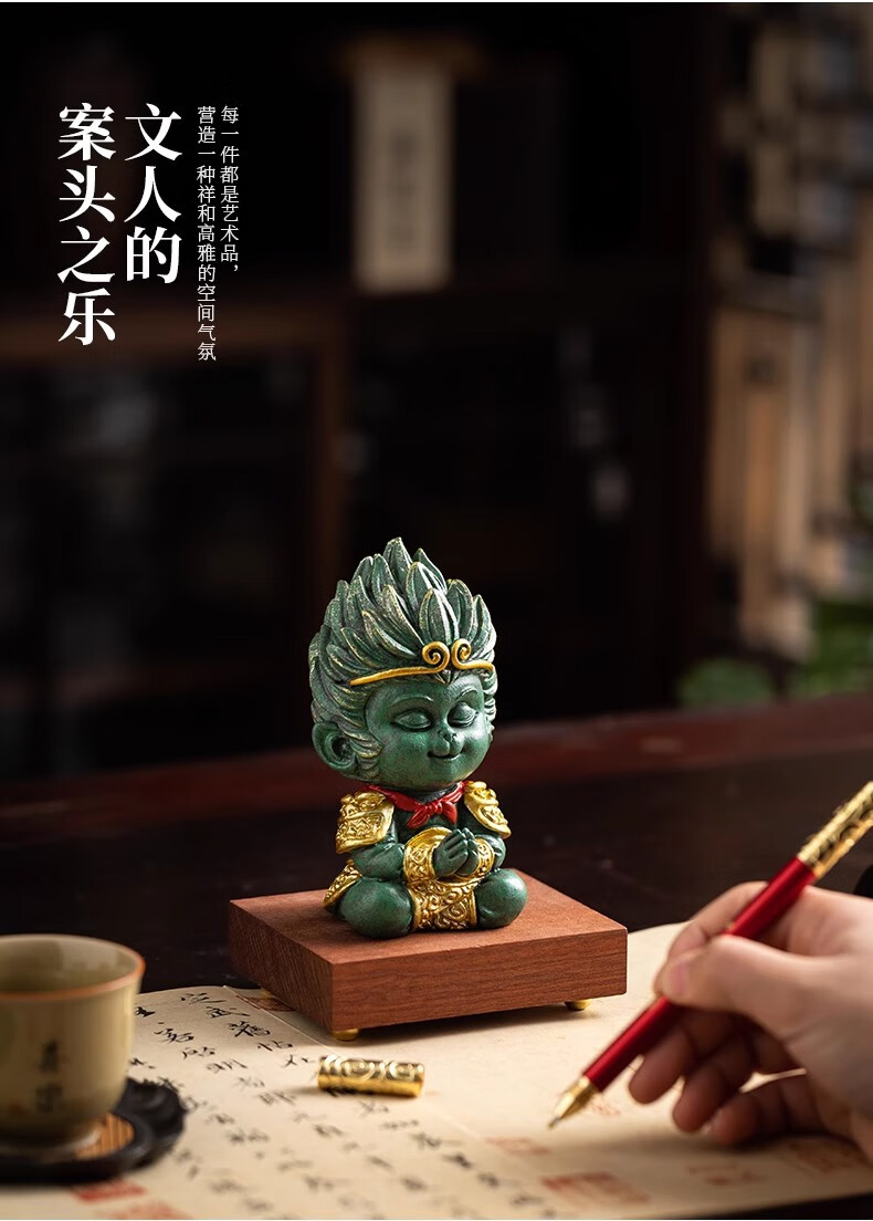 BOSSY Forbidden City Cultural and Creative Style National Trend Wukong Tea Pet Desktop Ornament Study Living Room Office Ornament Birthday Business Souvenir Wukong-Monkey King + Base Gift Box