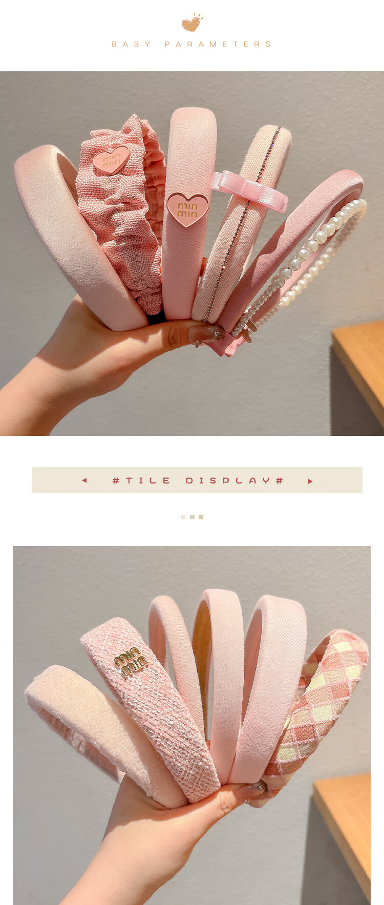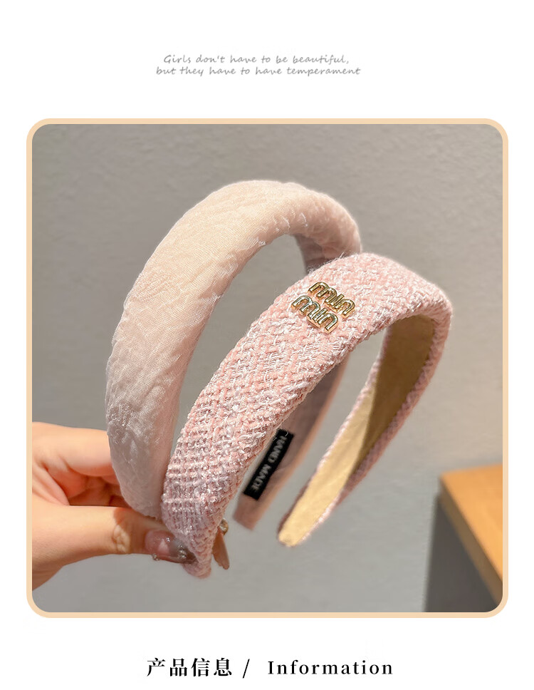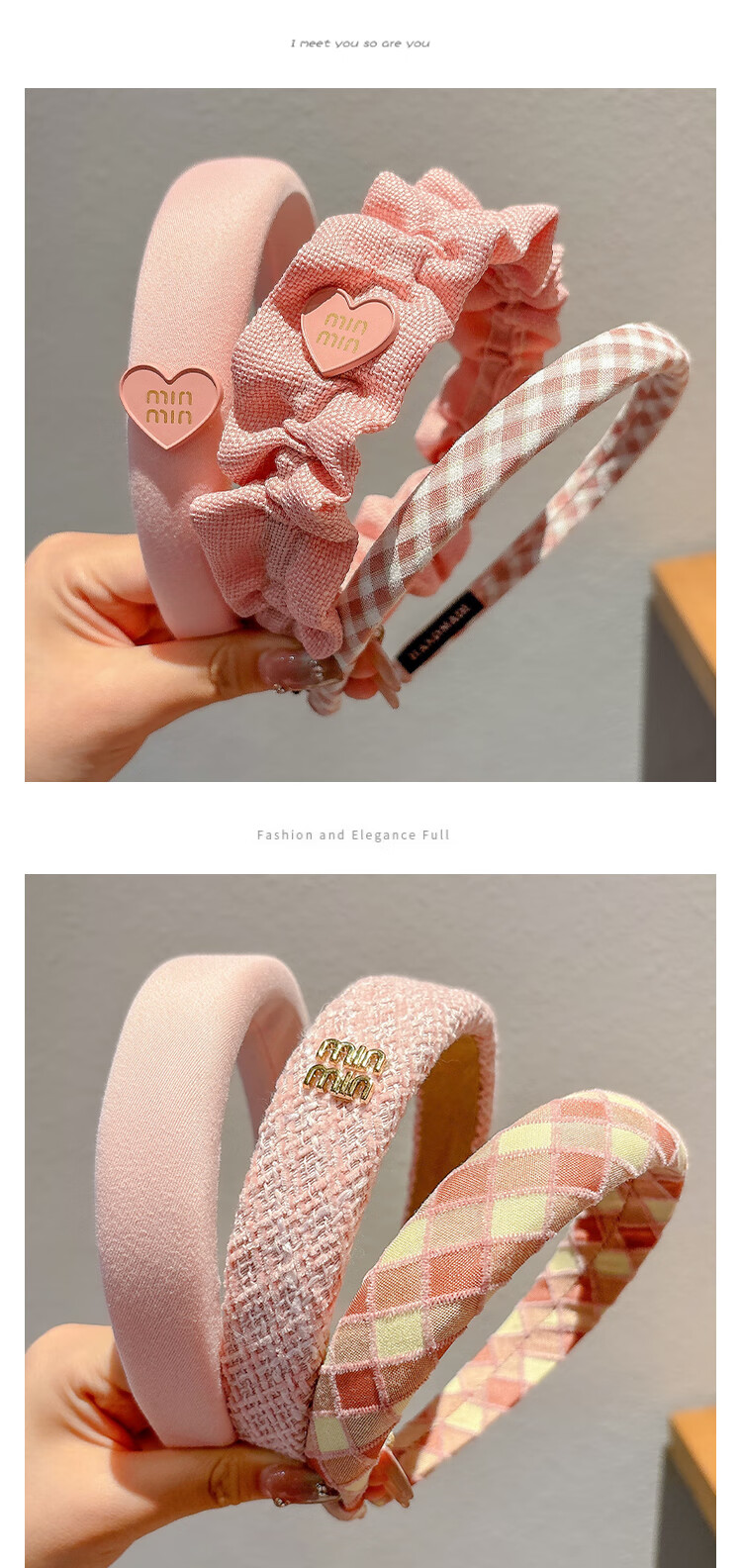 Suyi Embroidered Children's Hairband Women's 2024 New Style Non-Stretching Hair Washing Face Pressing Wide-Border Anti-Slip Headband Hair Bundling Girls Hairpin Headband Pink Letter Small Fragrance Hairband