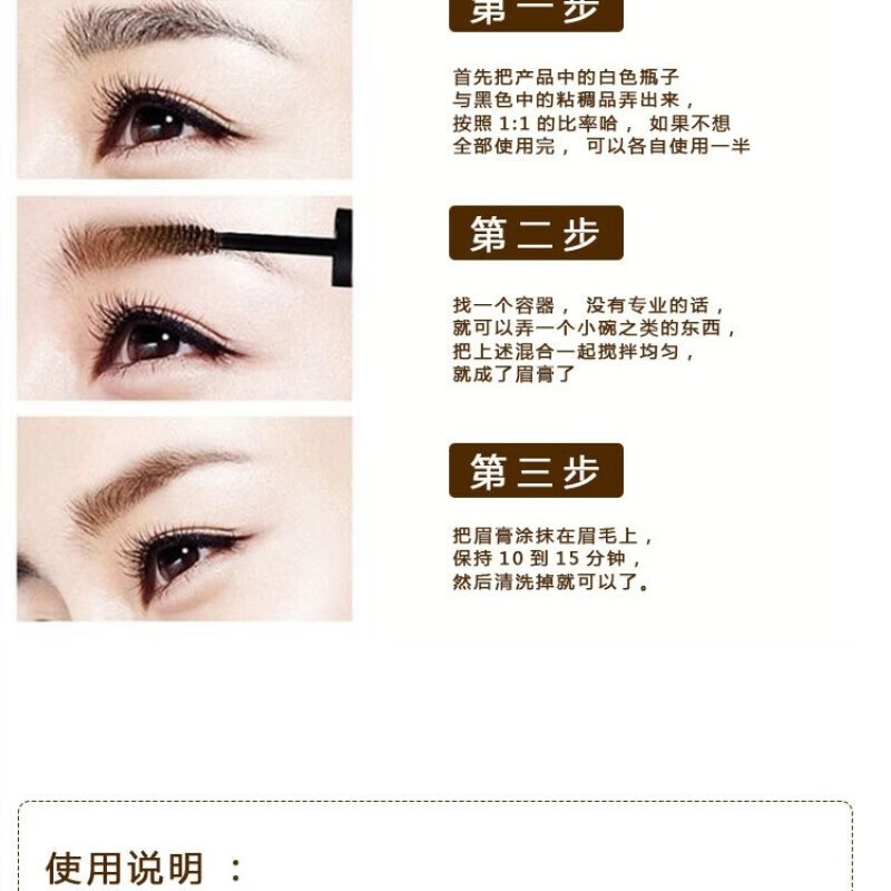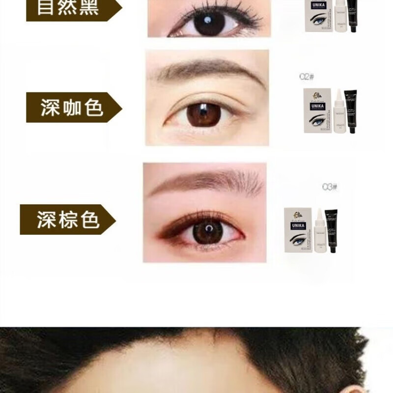 Authentic eyebrow dyeing cream for men. Use men's white eyebrow dyeing black cream to dye eyebrows. The dye will never fade. Natural black. White eyebrows dyed black.