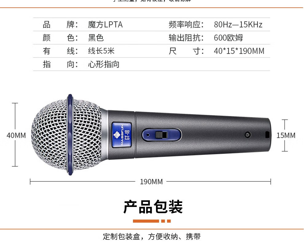 Magic 3 Magic Three GT-18 wired microphone dynamic microphone speaker singing karaoke audio conference speech stage microphone GT18 wired microphone 5M
