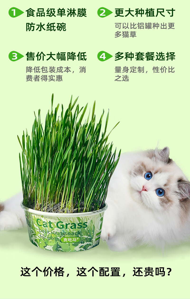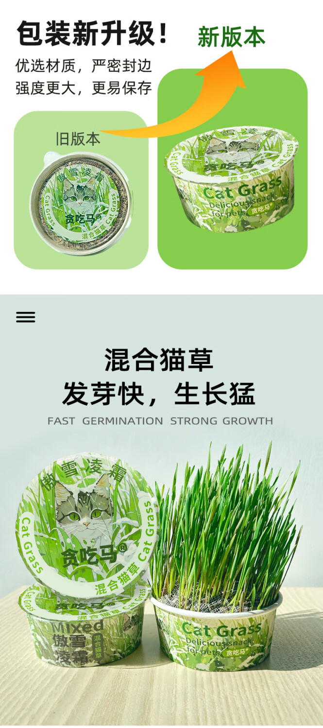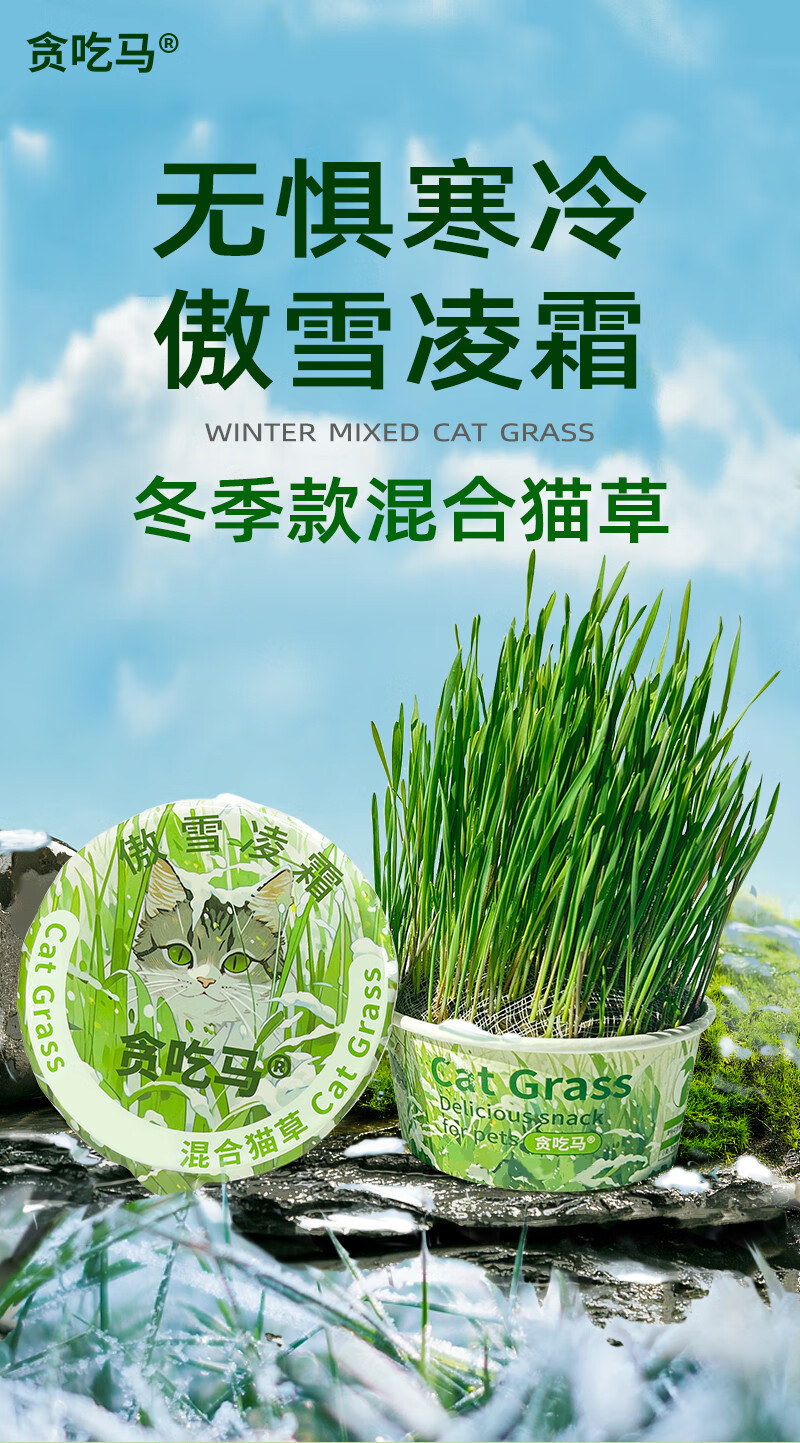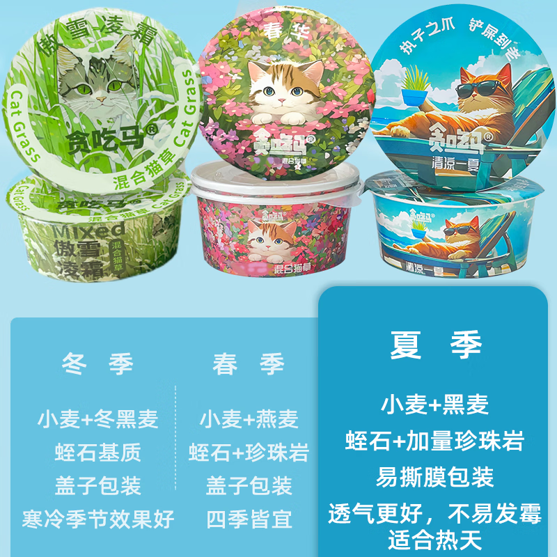 Greedy horse cat grass, lazy cat grass, ready-to-eat dehairing balls, cat snacks, hydroponic instant noodles, summer cat grass, winter style, Aoxue Lingshuang, combination 7 (single bowl), 1 pack
