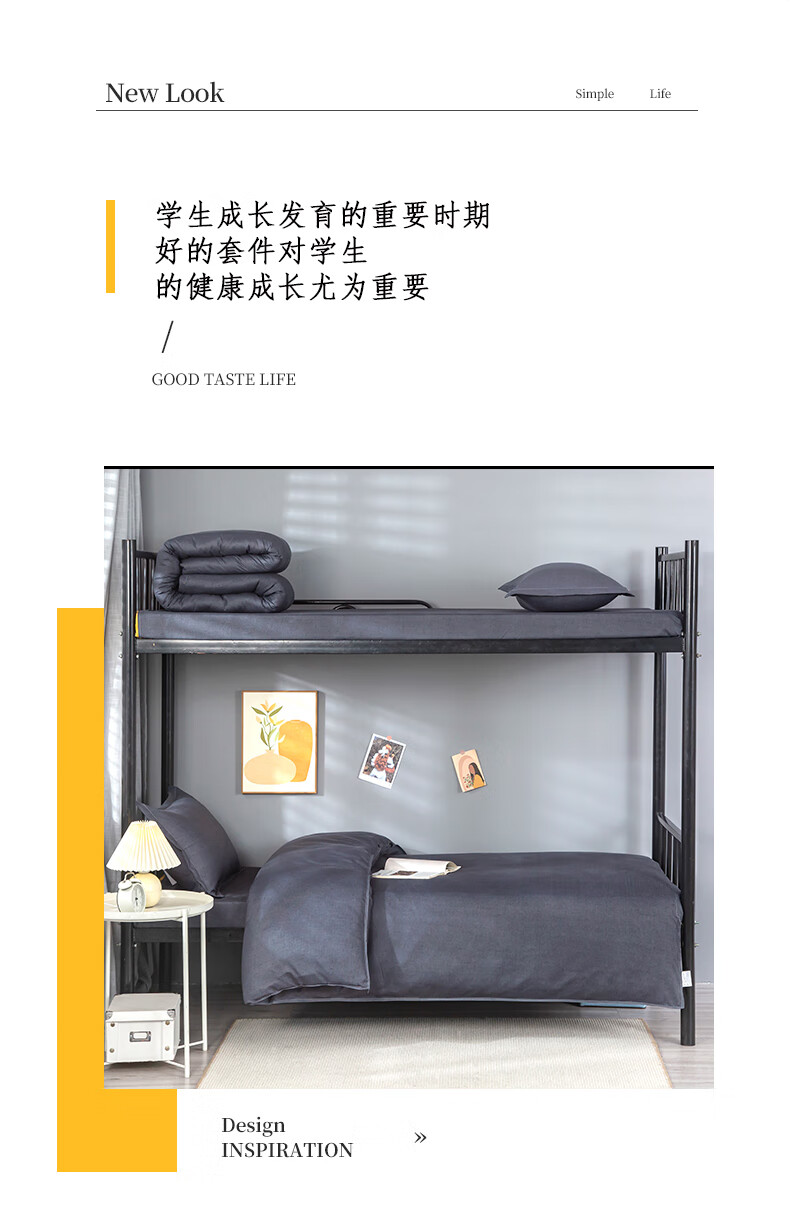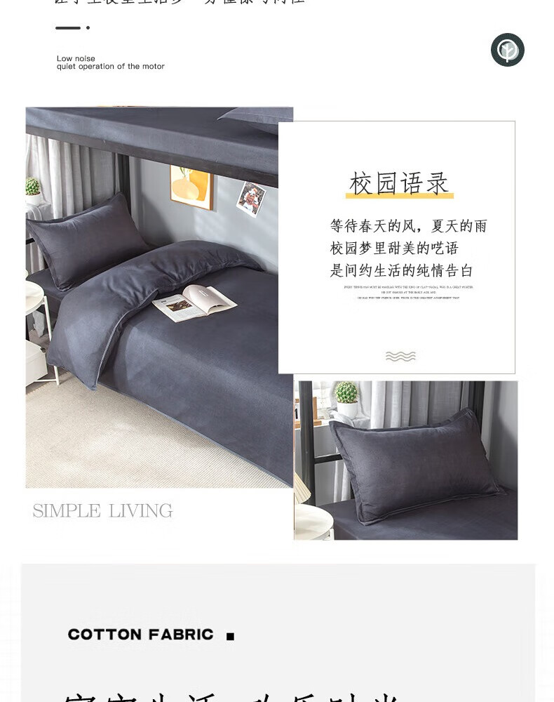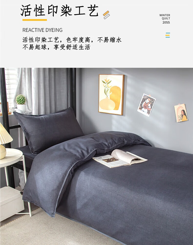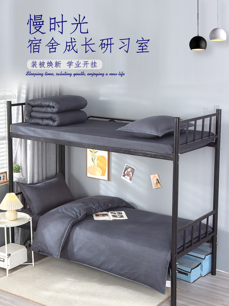 Student dormitory bunk bed single bed three-piece set skin-friendly brushed quilt cover sheet pillowcase home four-piece set Little Lucky-Grey single bed three-piece set quilt cover 150*200cm