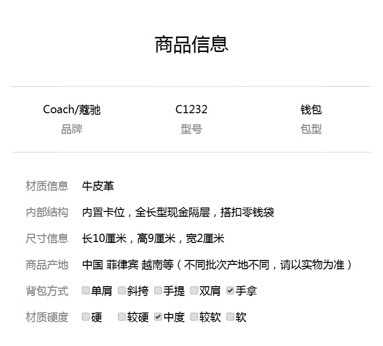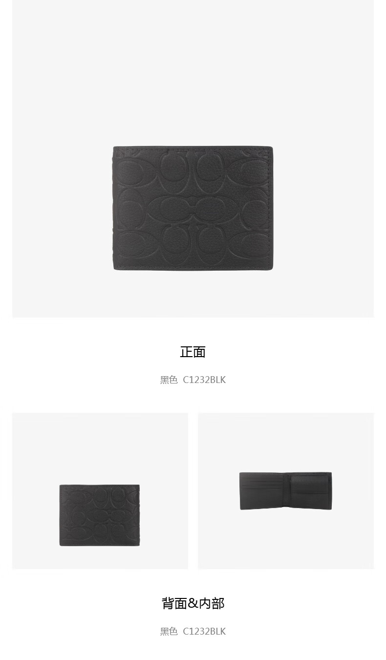COACH counter style men's leather short wallet official direct Valentine's Day gift black C1232BLK