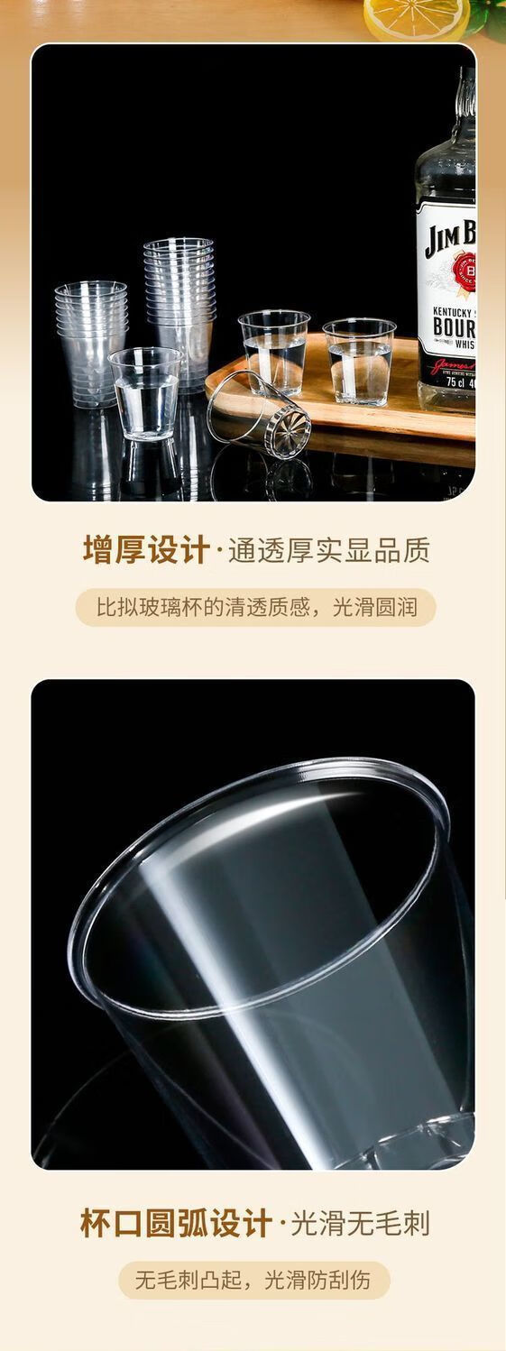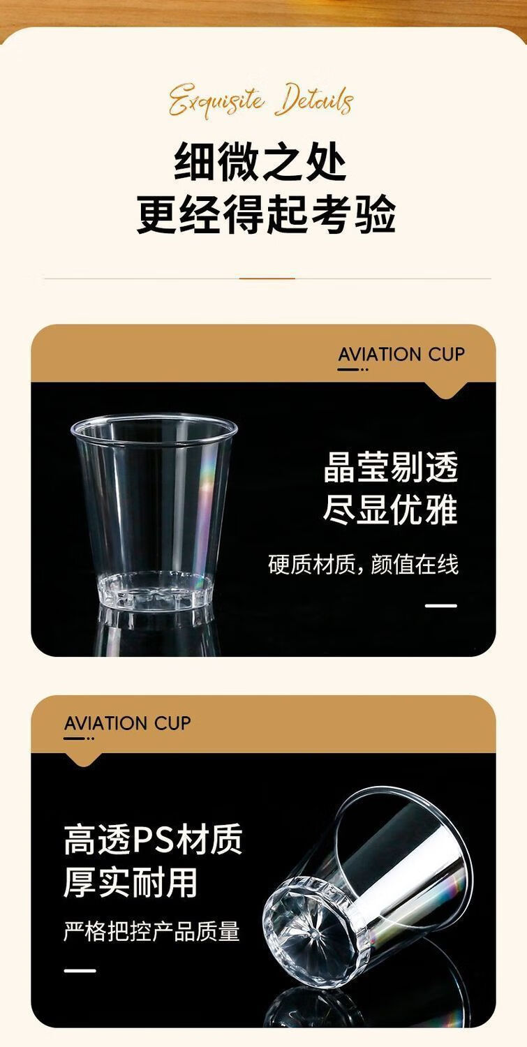 Kangenjia Aviation Cup Disposable Small Wine Cup Small Tea Cup Hard Plastic Household Thickened Liquor Beer Cup Bar Restaurant 100ML Small Wine Cup PS Material 100 Pieces