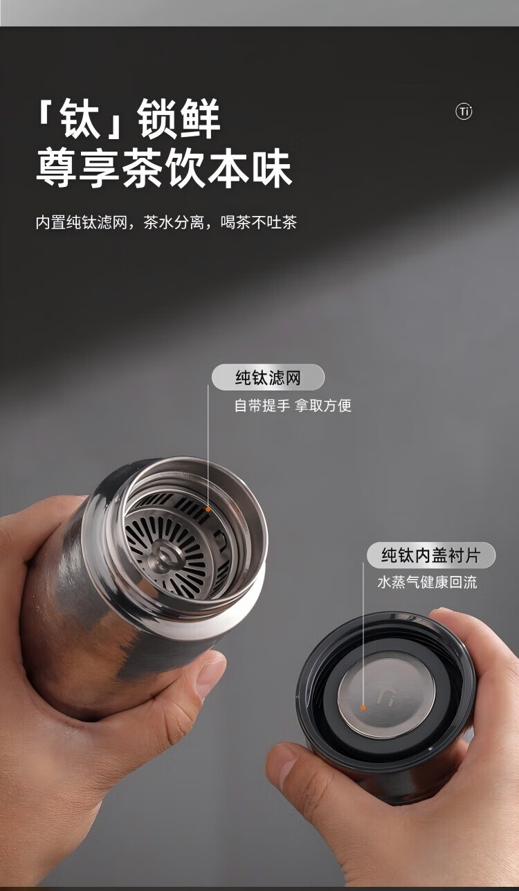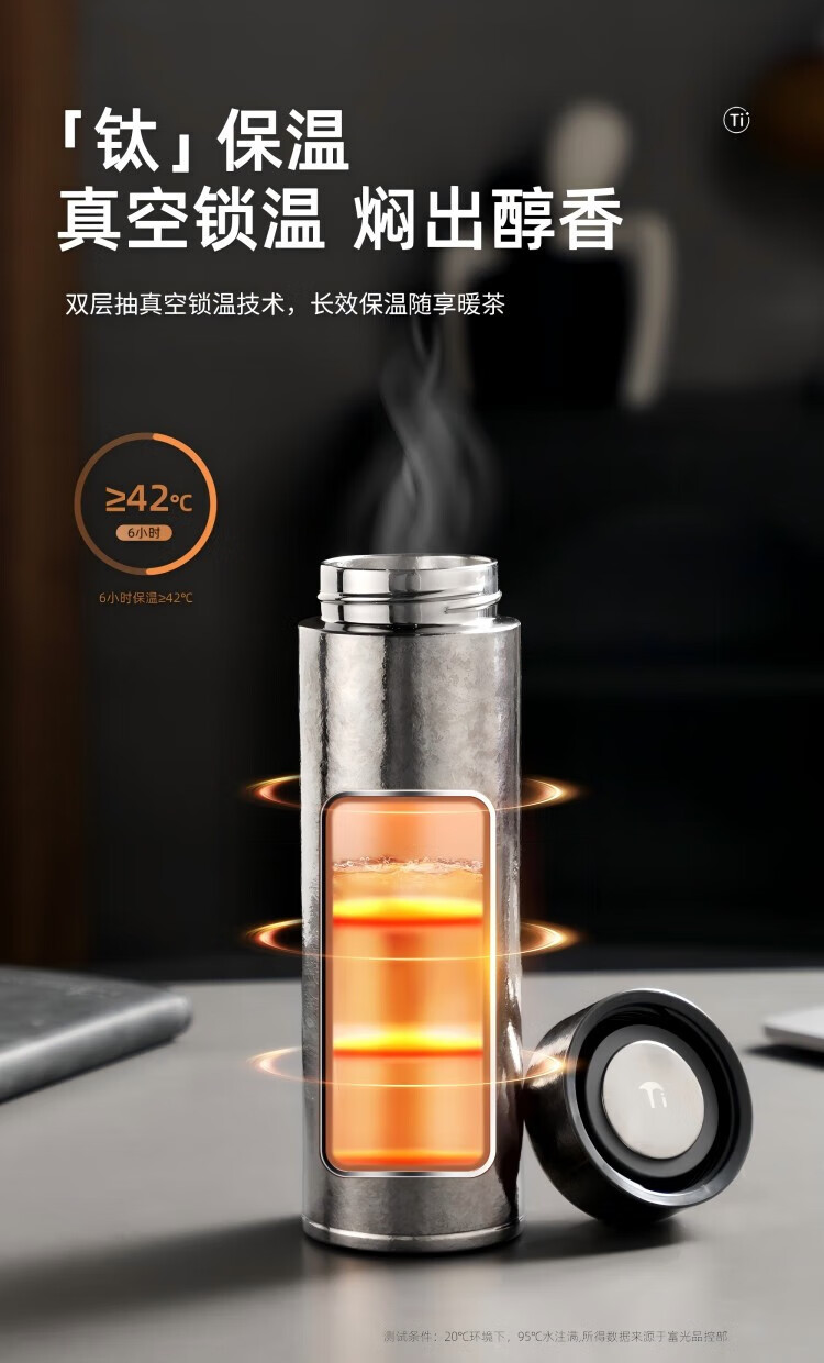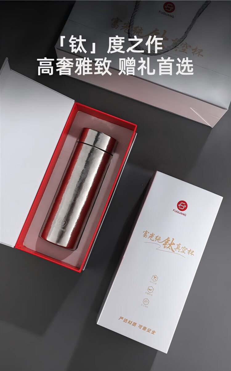 Fuguang pure titanium vacuum cup men's high-end business tea cup high-end office home gift box Xingyue Silver