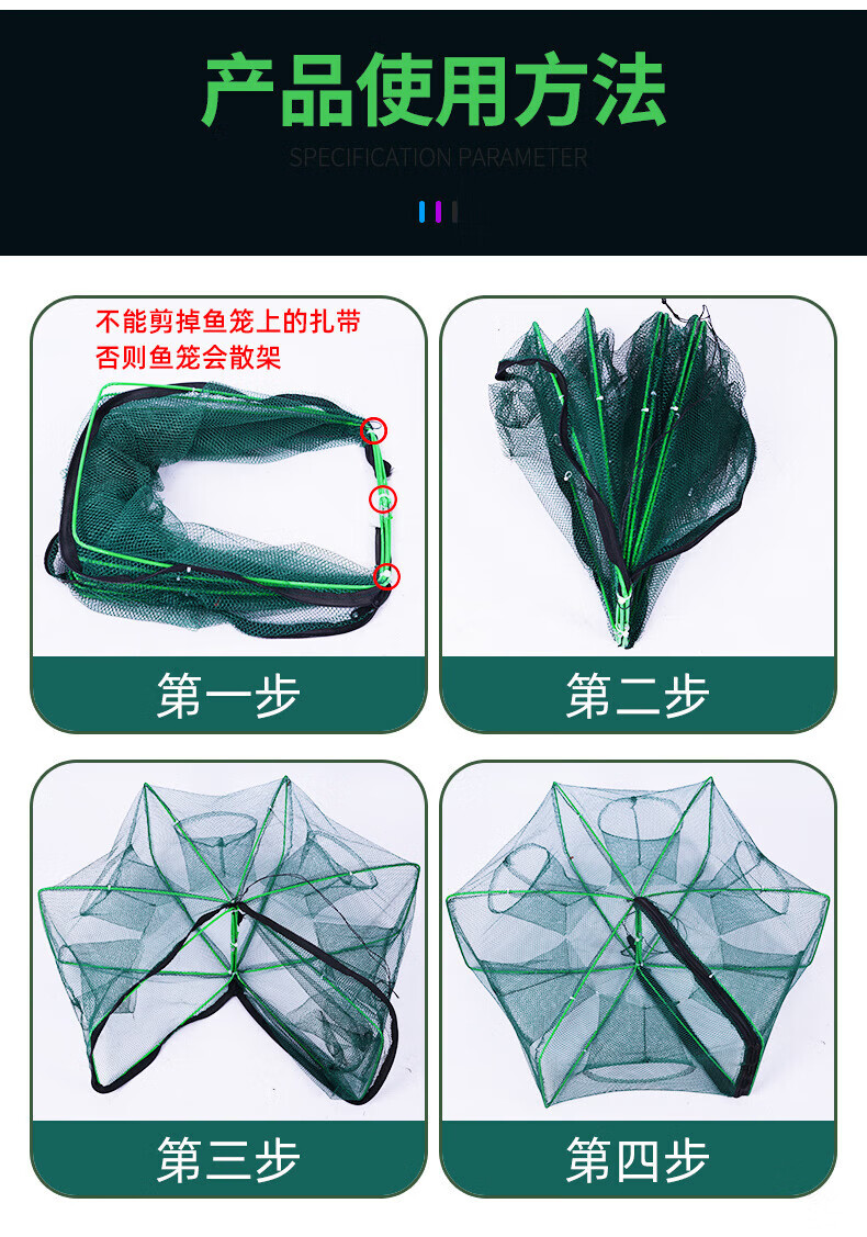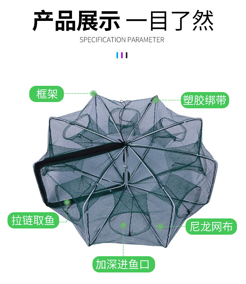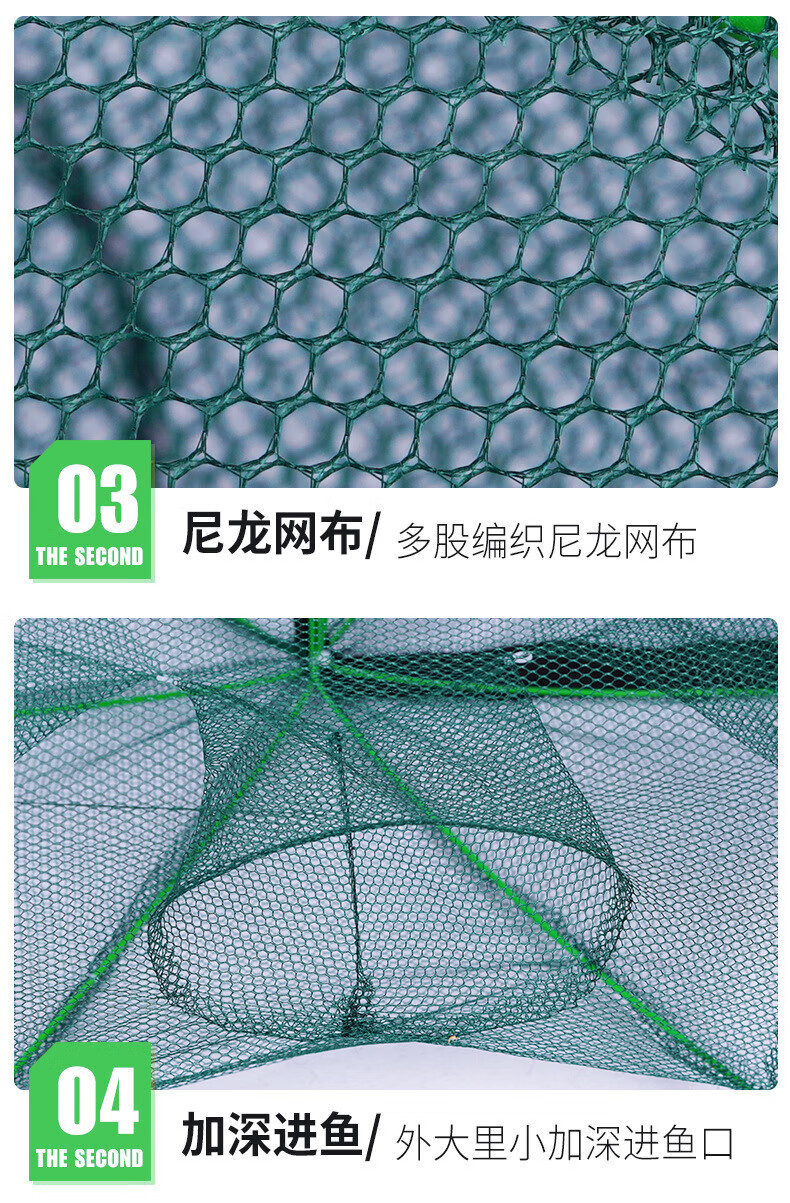 Bear fire folding shrimp pot polygonal round eel, loach, lobster fish net cage flower basket crab net fishing net nylon cloth shrimp pot 8 holes 20cm*60cm