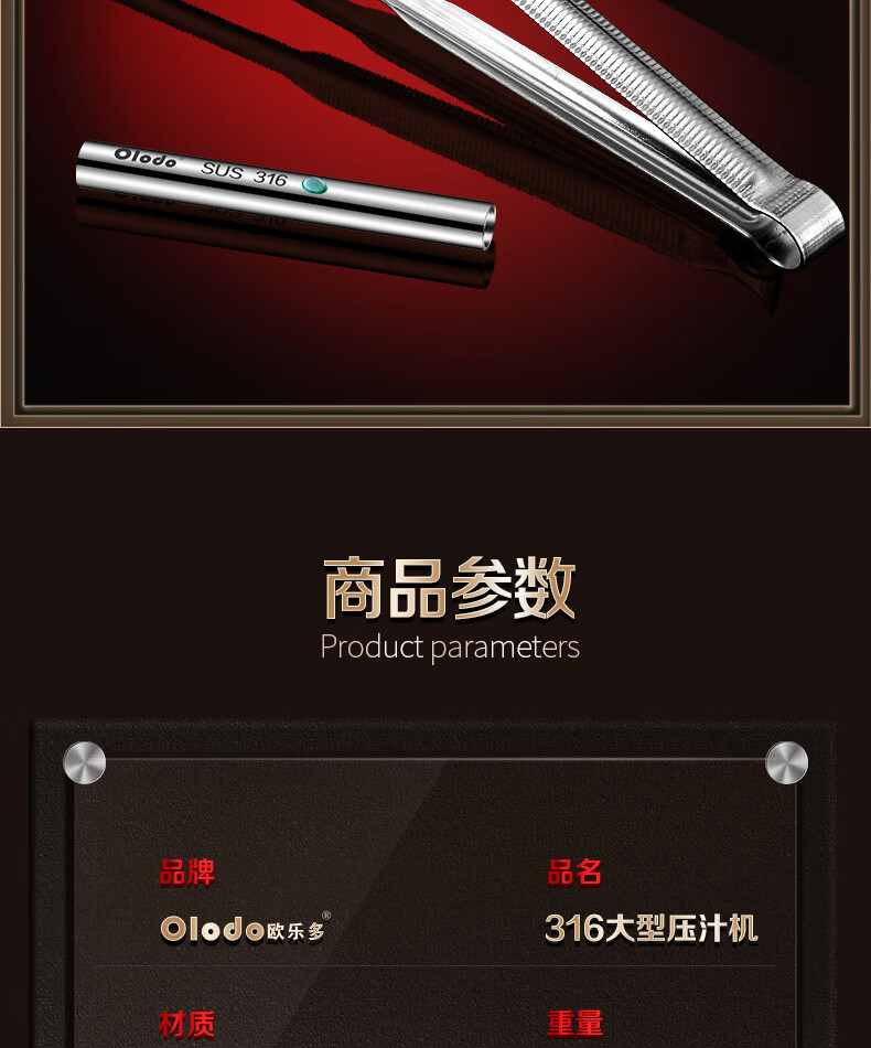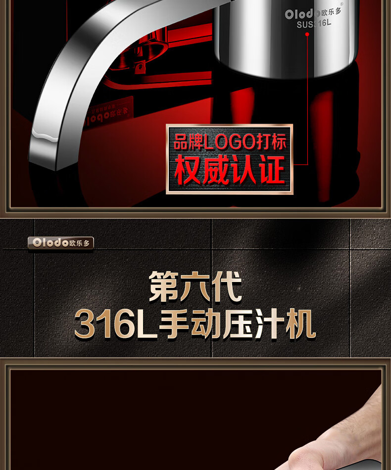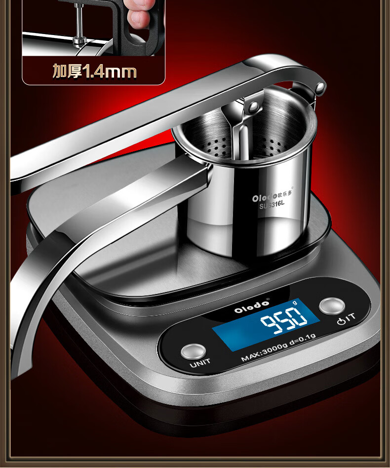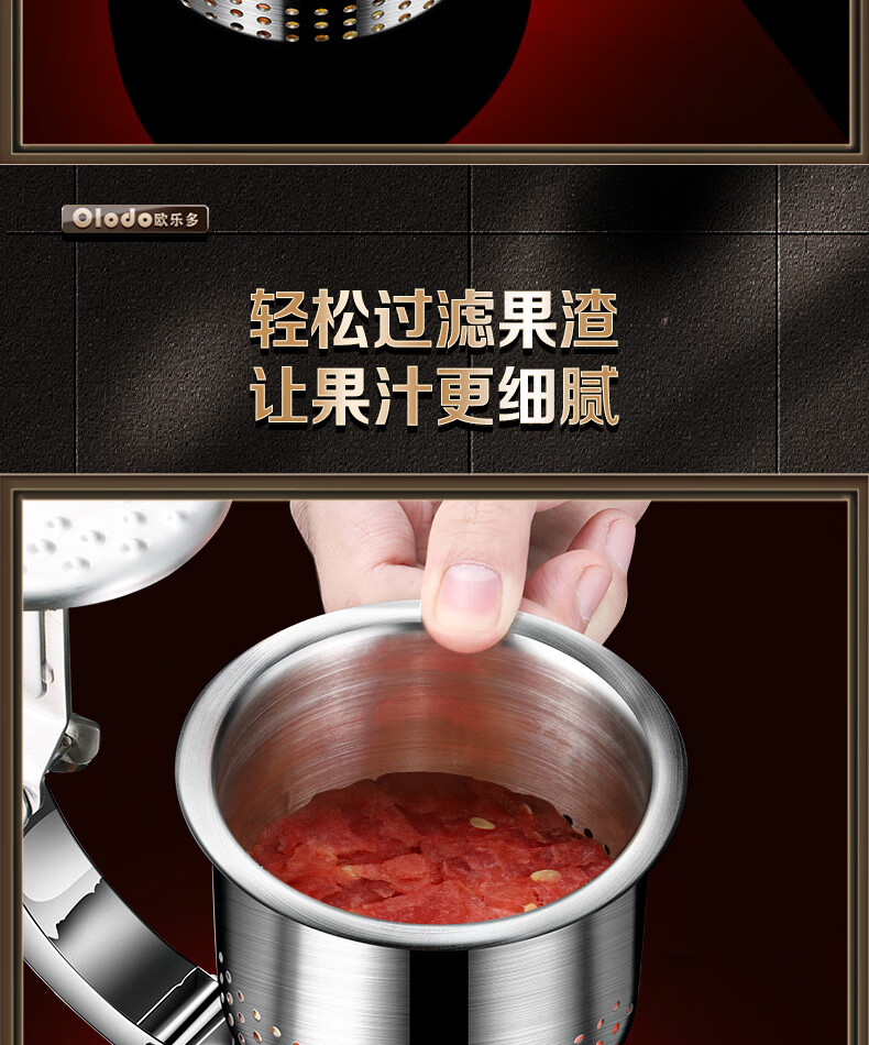 Olodo (Olodo) German 316L stainless steel manual juicer hand-pressed lemon orange juice residue separator pomegranate juice press 316L juicer free 50 filter residue bags
