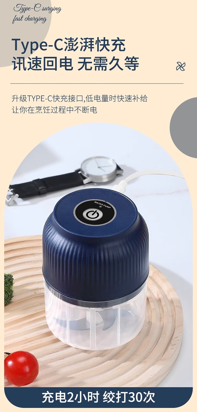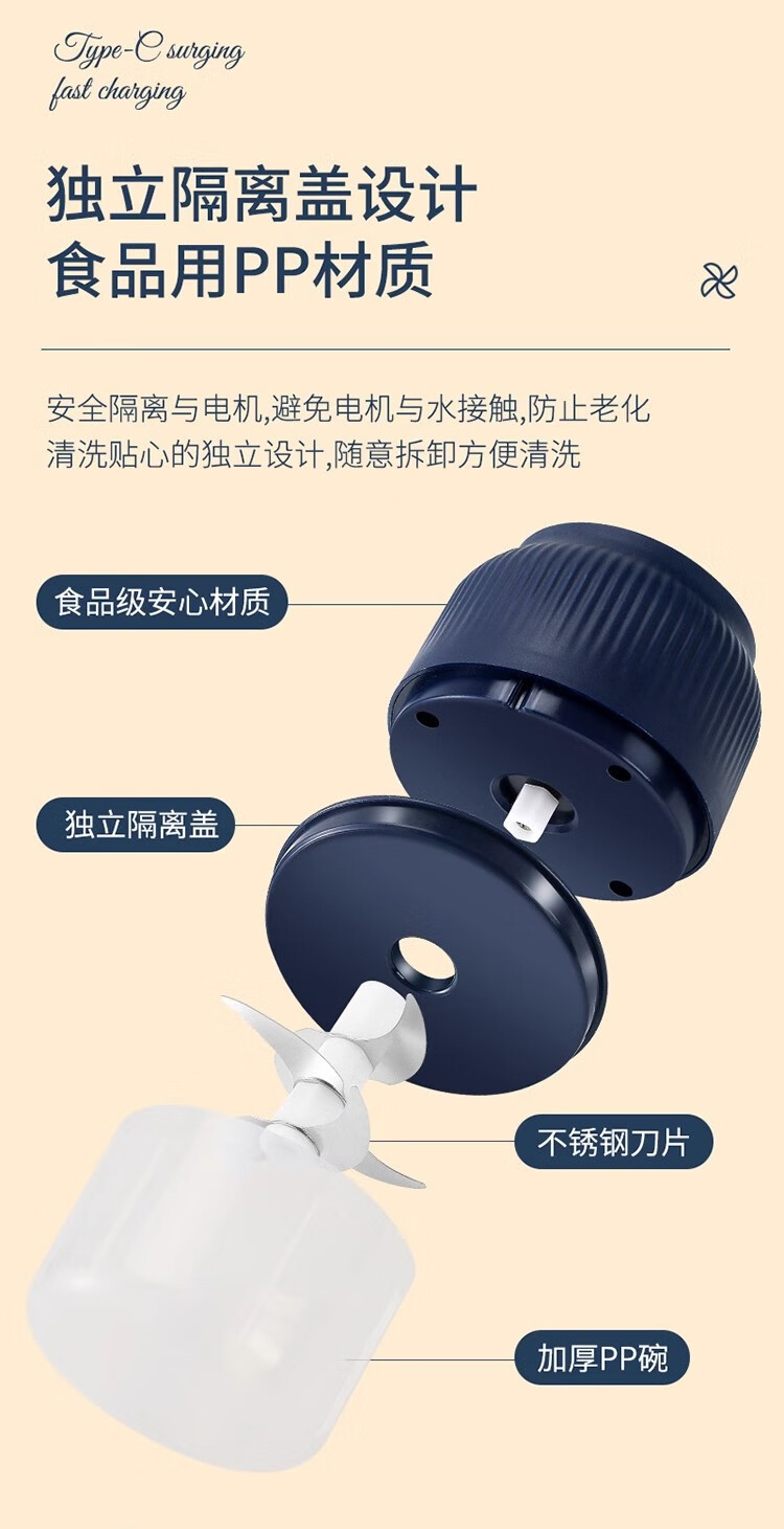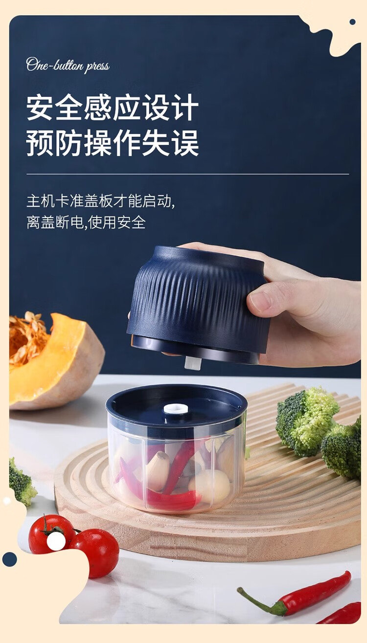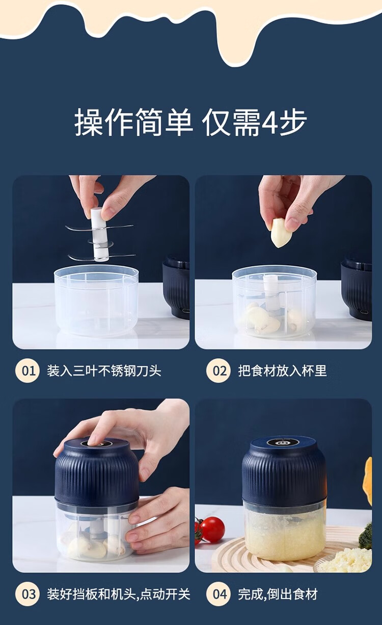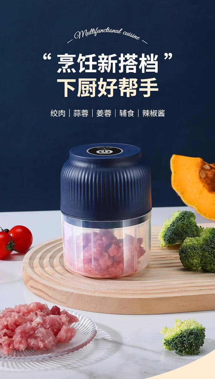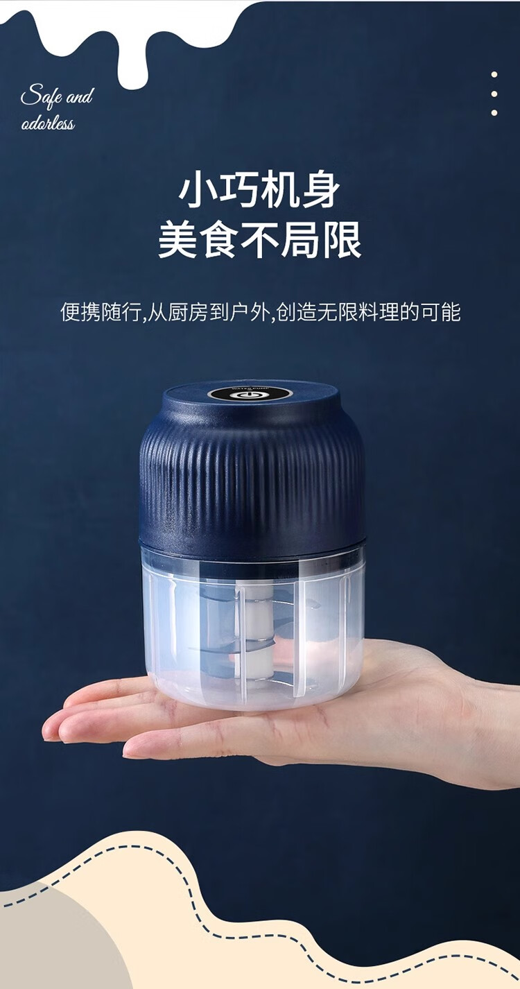 Fiyuega electric garlic masher, garlic masher, small garlic masher, household garlic masher, blue 400 ml + 6-leaf knife