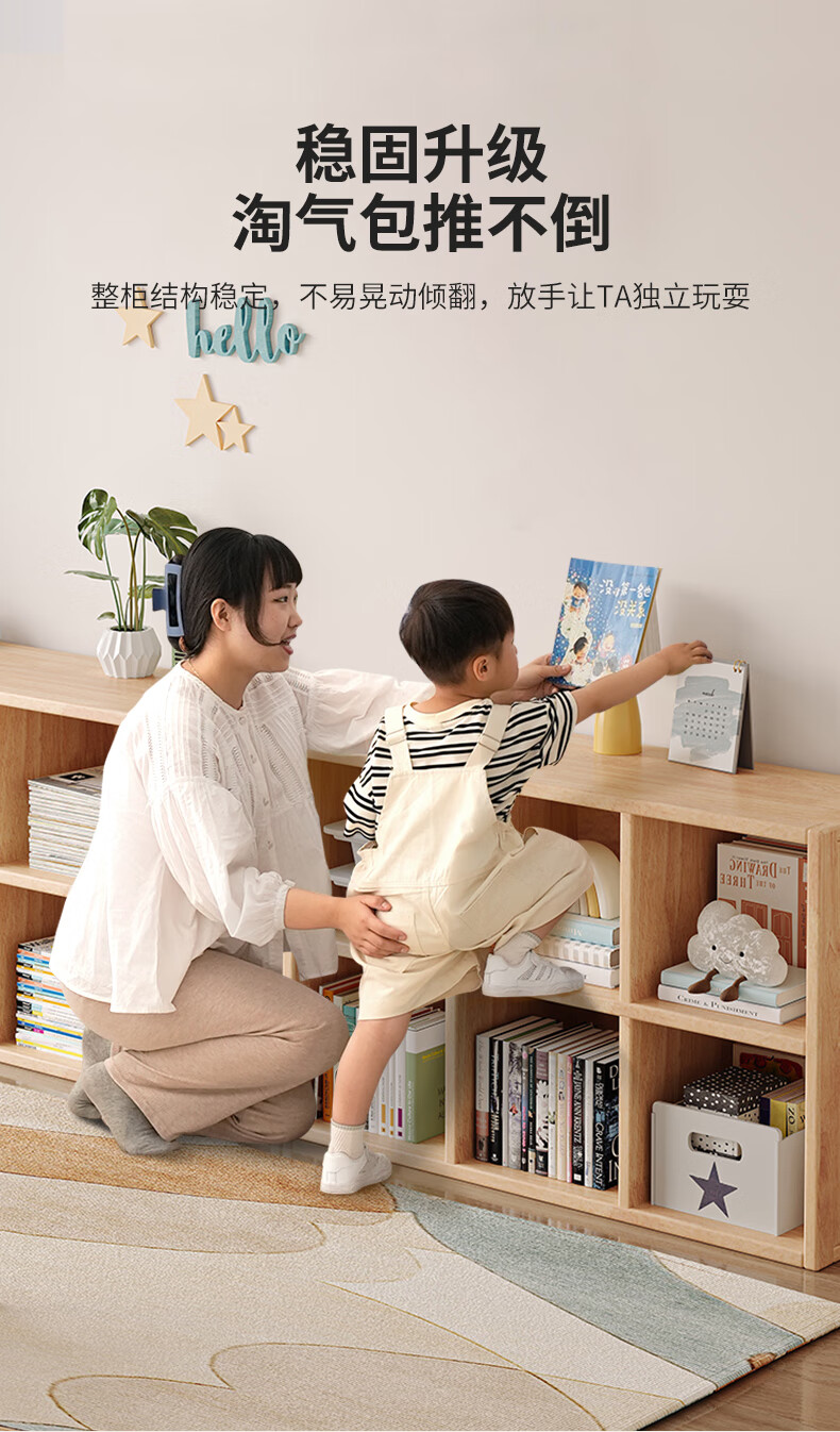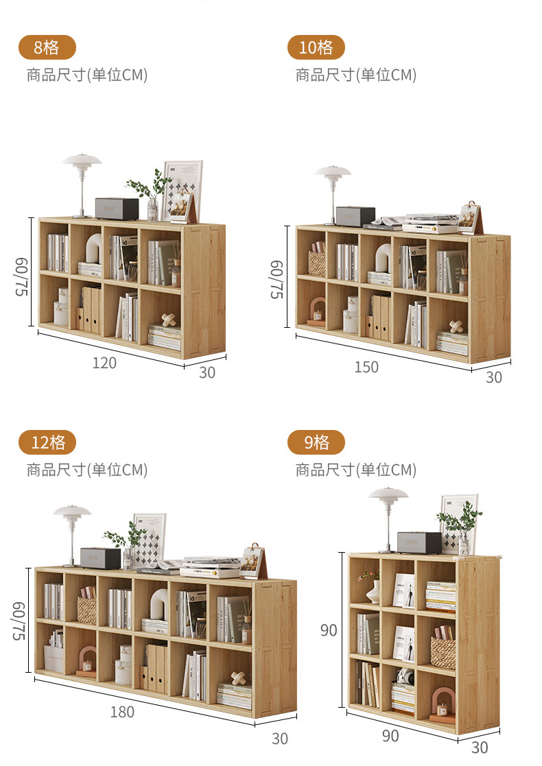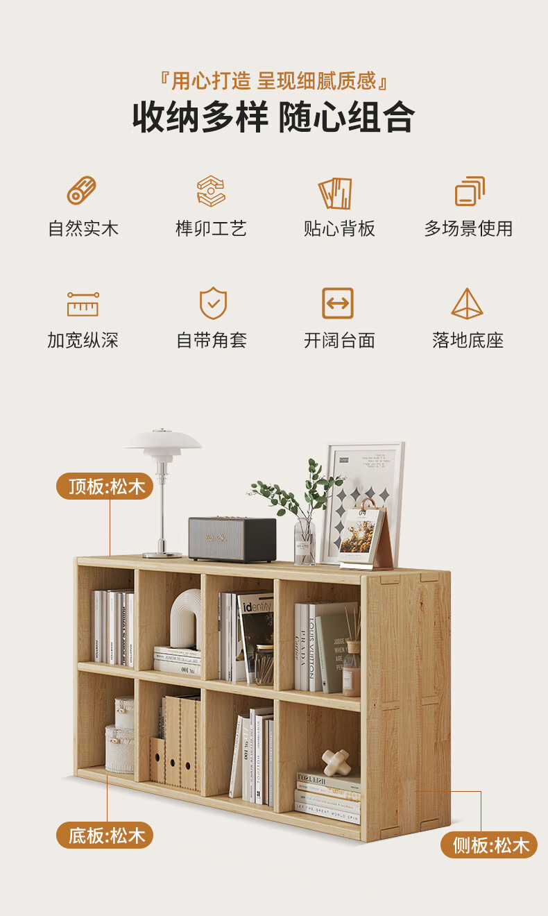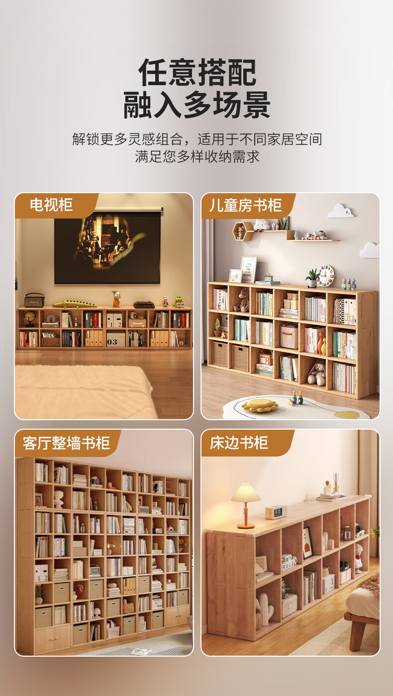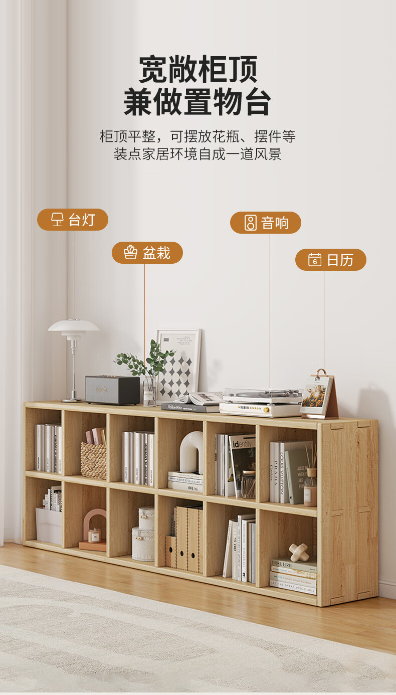 LEADTEK all-solid wood bookshelf storage rack floor-standing solid wood bookcase display cabinet student storage cabinet low cabinet cabinet storage cabinet recommended by the store manager 8 grids on the second floor 120x30x60cm-comes with anti-collision corner cover