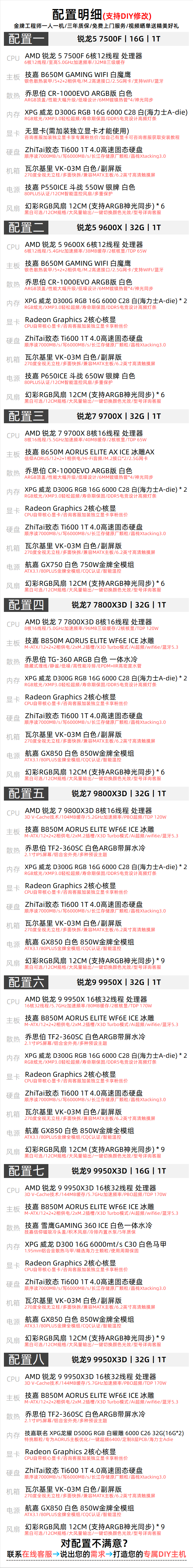 GIGABYTE AMD Ryzen R9 9800X3D/9950X3D/9700X no graphics card transition configuration barebones e-sports network game water cooling can be used with RTX5080/70Ti computer main configuration three Ryzen 7 9700X+32G+1T