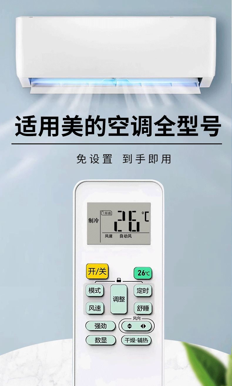 UUELE is suitable for Midea's air conditioner remote control, universal for all models of air conditioners, universal and universal, all mounted cabinets, power-saving Star Little Swan 1221 smart, suitable for Midea's universal remote control *including battery