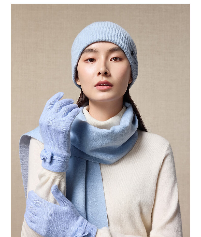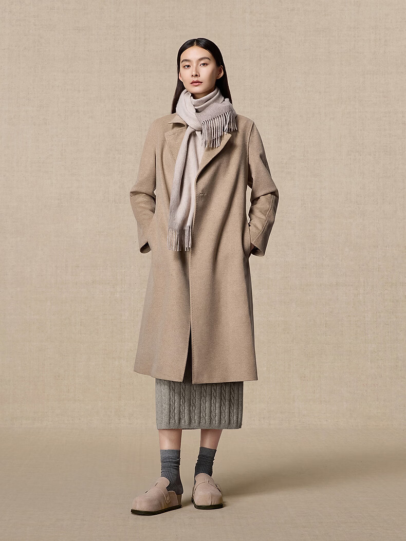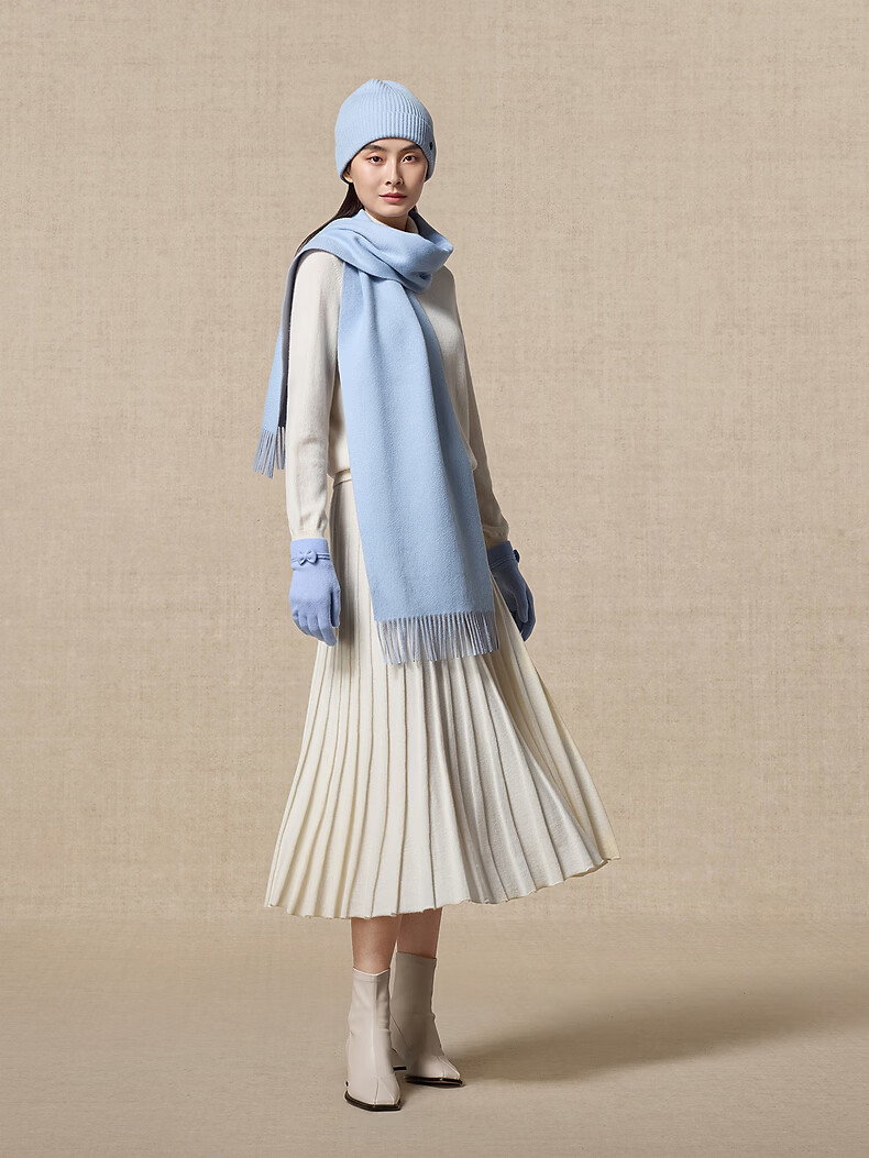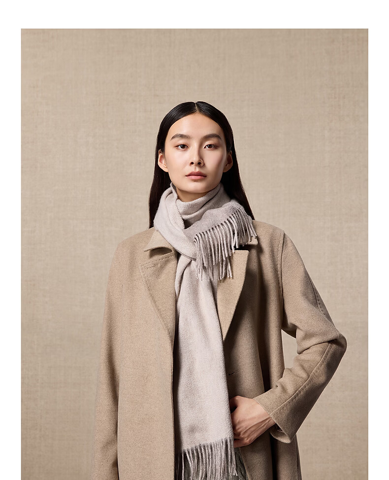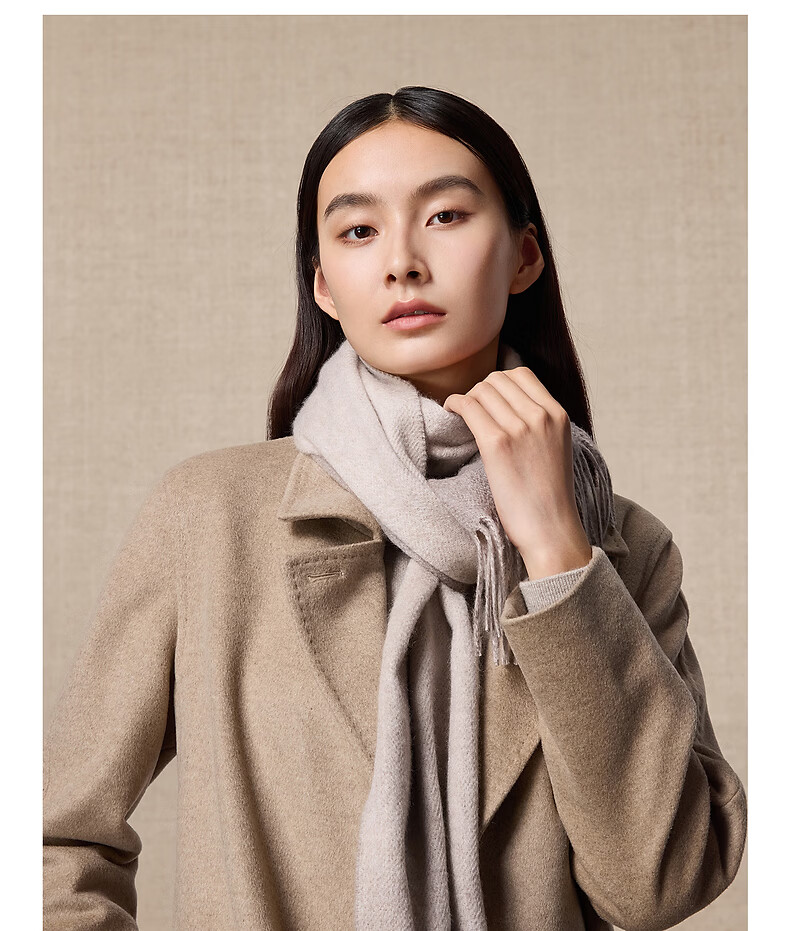 Ordos 1980 autumn and winter pure cashmere simple texture water pattern double layer warm and comfortable women's scarf Camel-25 180cmX30cm