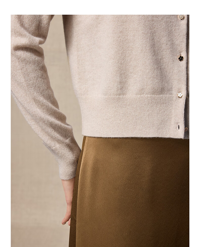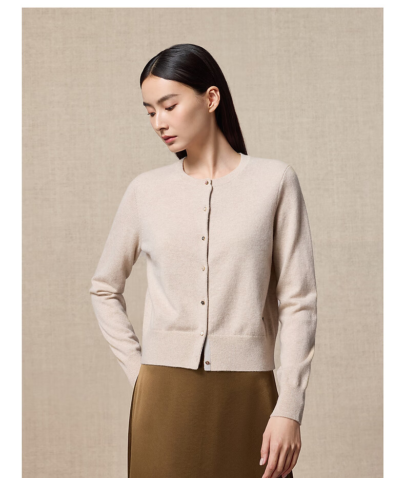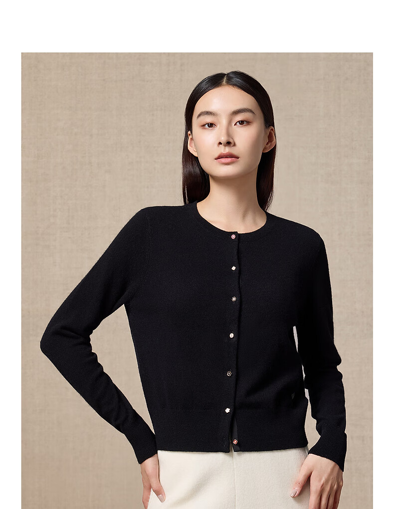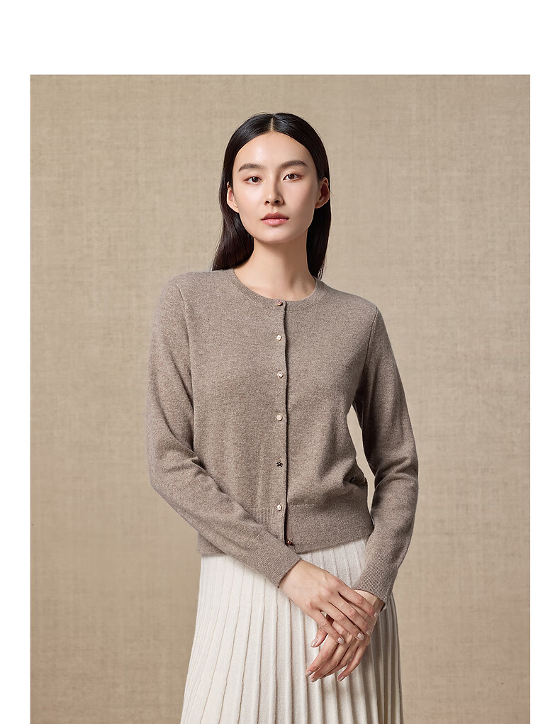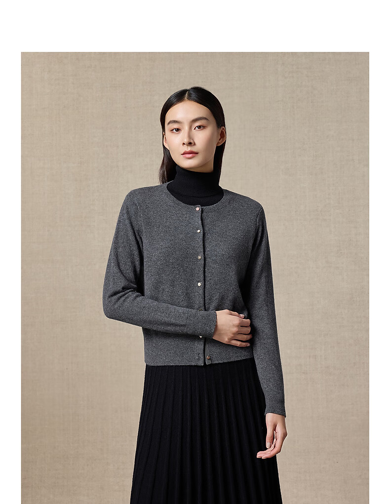 Ordos 1980 Autumn and Winter Cashmere Round Neck Simple Cardigan Jacket Women's Long Sleeve Cashmere Cardigan Dark Gray-25 L 165/88A