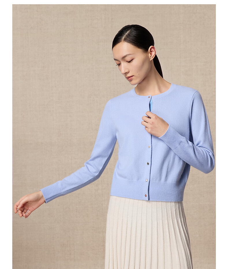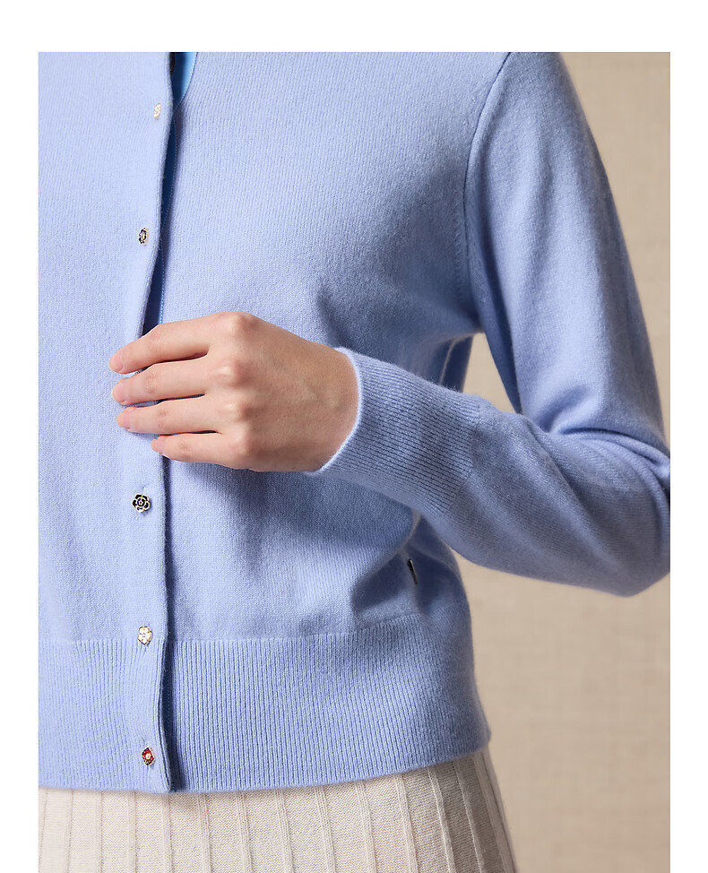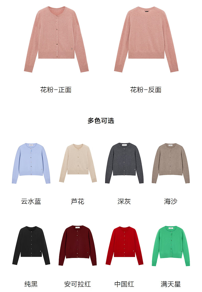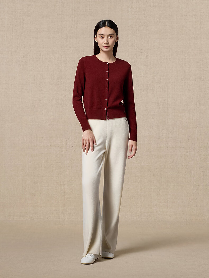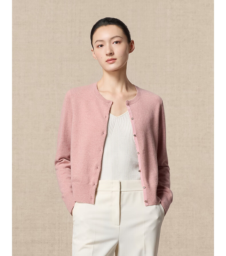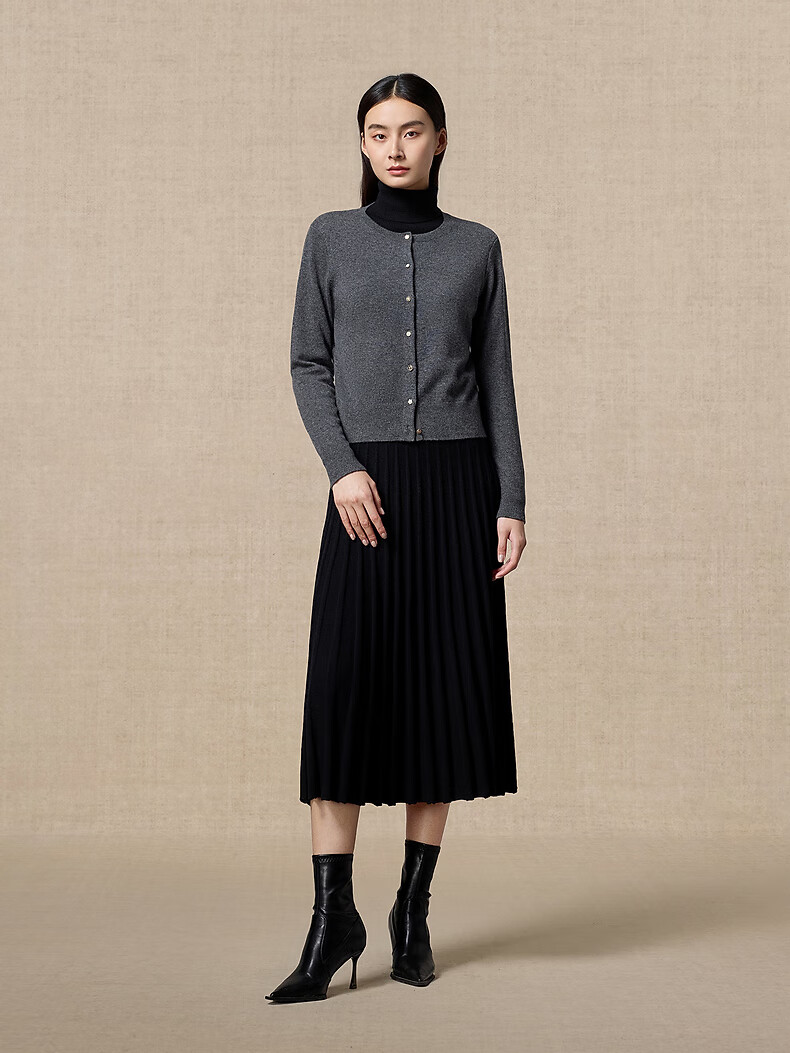 Ordos 1980 Autumn and Winter Cashmere Round Neck Simple Cardigan Jacket Women's Long Sleeve Cashmere Cardigan Dark Gray-25 L 165/88A