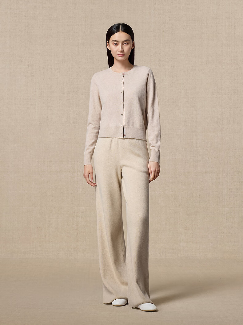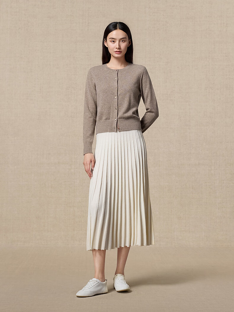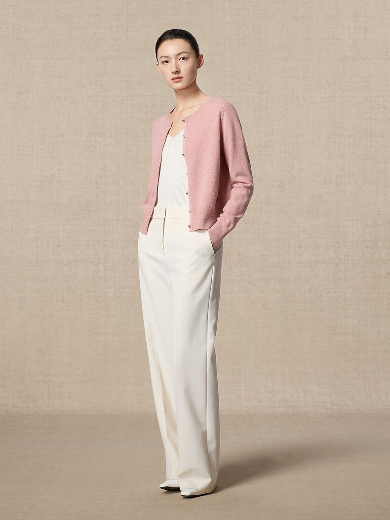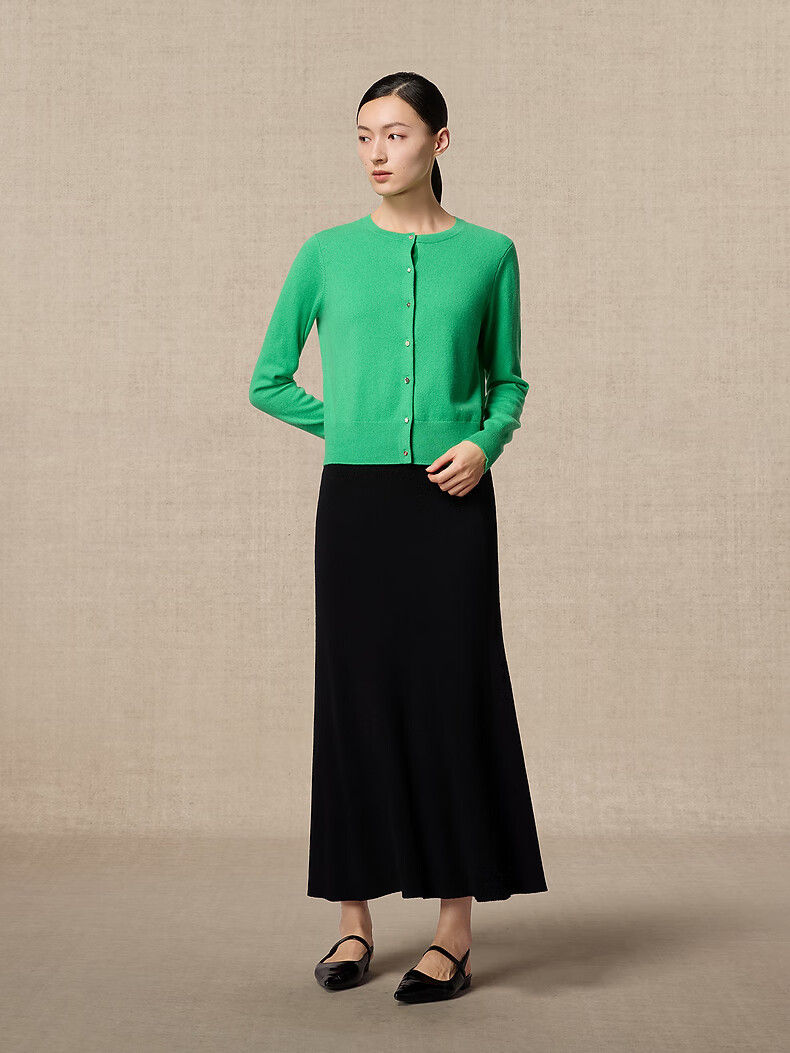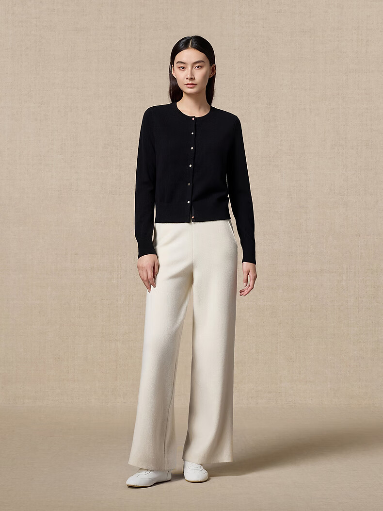 Ordos 1980 Autumn and Winter Cashmere Round Neck Simple Cardigan Jacket Women's Long Sleeve Cashmere Cardigan Dark Gray-25 L 165/88A